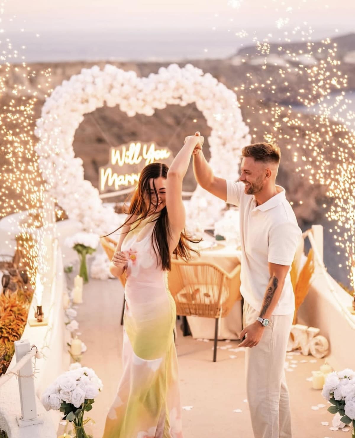 Je crée une séance photo détendue et amusante, sans poser dans les lieux emblématiques de Santorin.