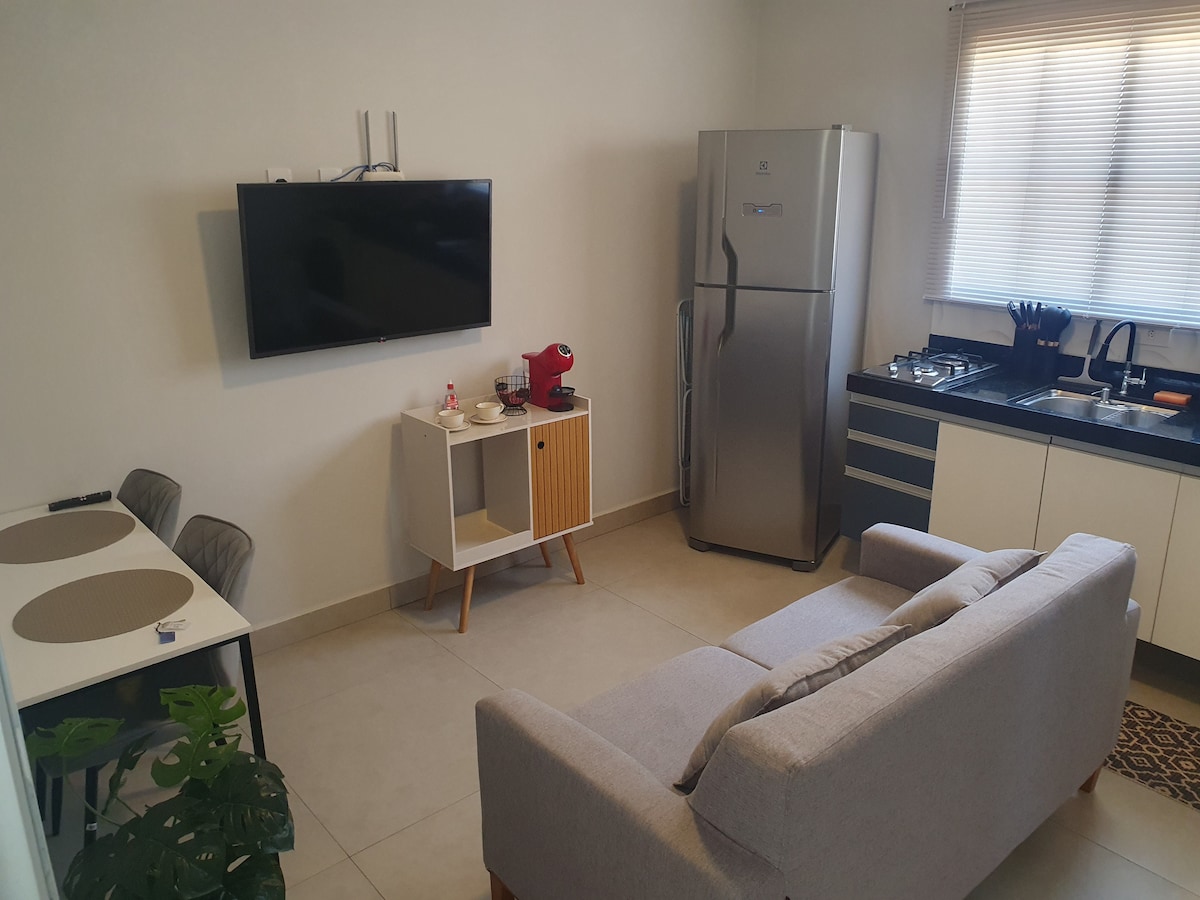 Appartement 🏡 fonctionnel et confortable - Idéal pour ceux qui recherchent un environnement calme pour travailler, étudier ou simplement se reposer. Situé à seulement un pâté de maisons du Parque das Frutas, parfait pour la randonnée, les pique-niques ou les promenades en plein air avec des animaux de compagnie. 🛏️On fournit des draps et des articles de toilette (draps, serviettes, savon ou papier de toilette). 🚗 Stationnement : place de stationnement extérieure n° 04. 🔐 Arrivée et départ L'accès à l'appartement se fait par une boîte à clés sécurisée.