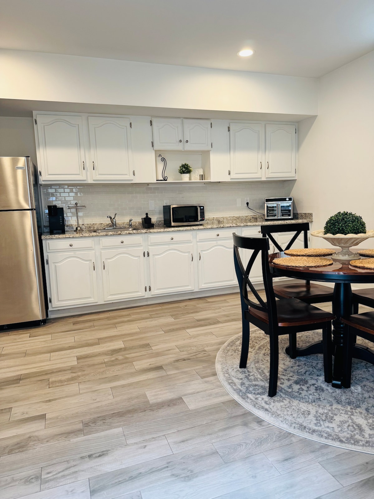 Espace de sous-sol spacieux, moderne et privé ! 1 chambre/salle de bain, situé au centre de la Virginie du Nord, à 35 minutes de Washington. À proximité des réserves naturelles locales, du centre commercial, de l'hôpital et plus encore ! Équipements : lit King Size, 2 espaces de vie, 2 téléviseurs intelligents. Kitchenette : réfrigérateur de taille normale COMMUN, micro-ondes, Keurig, friteuse à air, pas de plaque de cuisson/cuisinière disponible. Entrée privée, REMARQUE : vous marcherez dans l'herbe pour vous rendre au sous-sol ! Stationnement dans la rue dans un quartier calme. Interdiction de fumer, de vapoter ou d'utiliser des cigarettes électroniques.