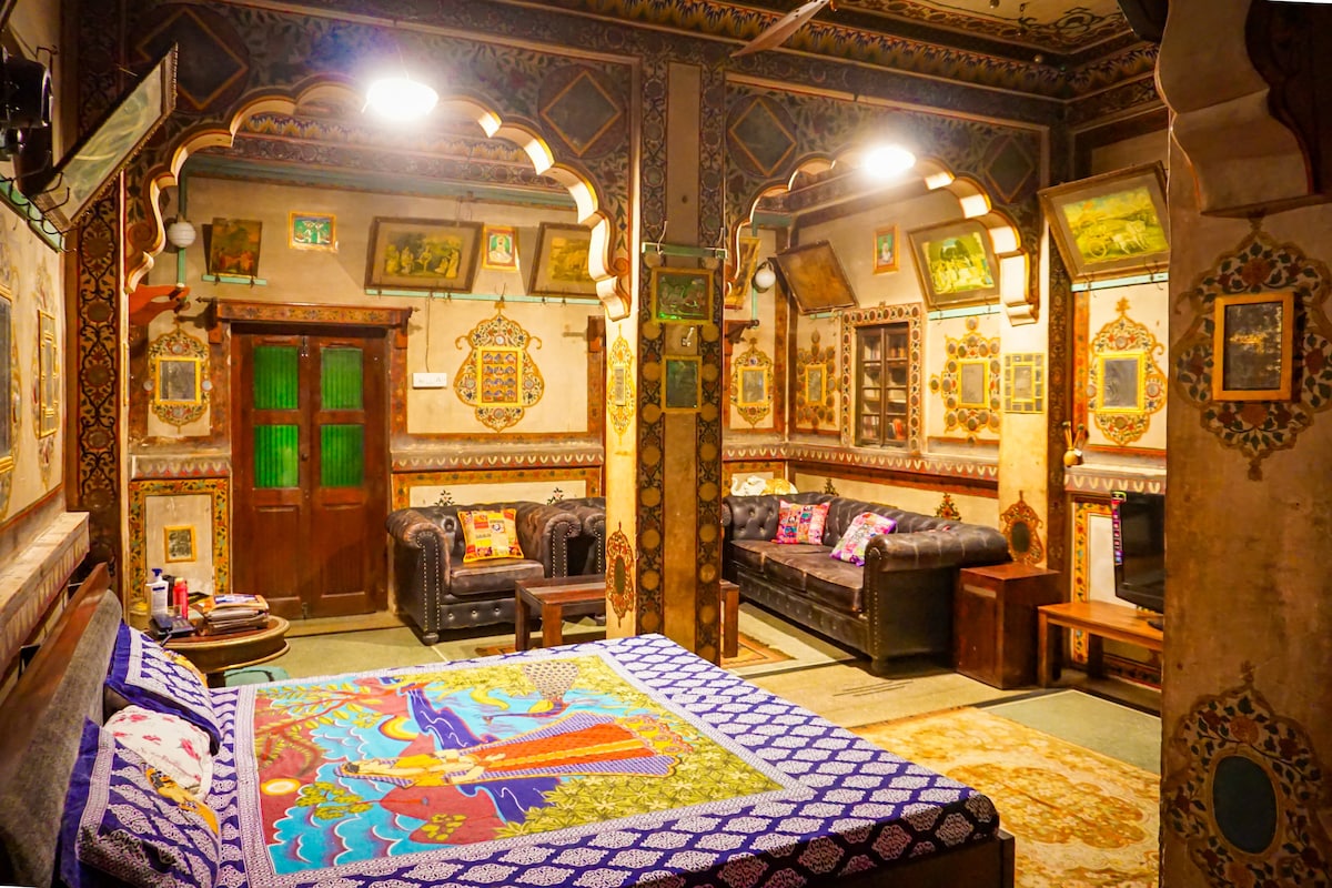 Cette salle de palais a été construite par les grands architectes de la famille royale de Jodhpur dans les années 1800 . Cette chambre est maintenue intacte depuis des siècles . Plein de belles peintures de légumes et d'épopées de la mythologie hindoue, vous pouvez explorer l'histoire à l'intérieur . Cette chambre se trouve proche du temple et on dit qu'elle est pleine d'énergie positive (il y a donc un règlement intérieur aussi ). Elle a une salle de bain attenante avec tous les équipements nécessaires. Ce logement est situé en plein centre ville.