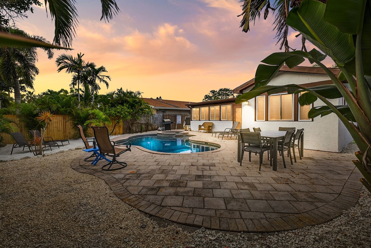 Échappez-vous dans notre paradis tropical ! Le jardin privé regorge de palmiers, de végétation tropicale et de fleurs natives, le patio couvert offre un espace détente immergé dans le jardin. Espace grill, table extérieure, chaises longues. À 5 minutes de la plage d'Indian Rocks et des commodités du centre-ville. Partez en balades à vélo sur le Pinellas Trail et le parc Tailor avec nos vélos fournis. Fun ou pêche, avec nos kayaks et équipements fournis pour charger sur votre voiture.