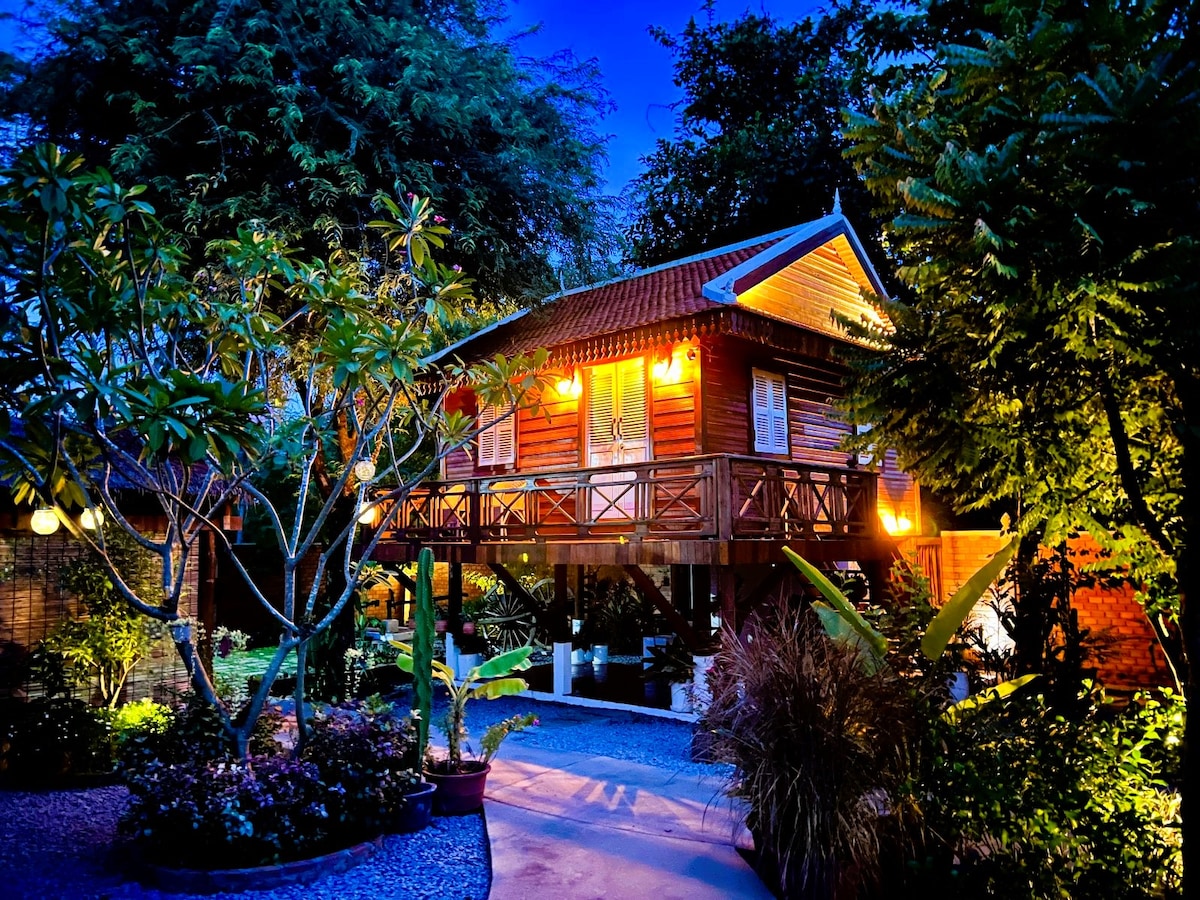 Découvrez votre retraite tranquille à Chiang Mai Nichée au milieu de tecks luxuriants, notre villa offre une évasion sereine de l'agitation de la ville. Réveillez-vous avec les sons de la nature et une vue panoramique sur l'étang. Profitez de la piscine étincelante du jardin, parfaite pour une baignade rafraîchissante ou un bain de soleil. Toutes les chambres sont climatisées pour votre confort. Venez découvrir le mélange parfait entre une vie paisible à la campagne et un accès facile aux trésors culturels de Chiang Mai, à seulement 20-30 minutes.