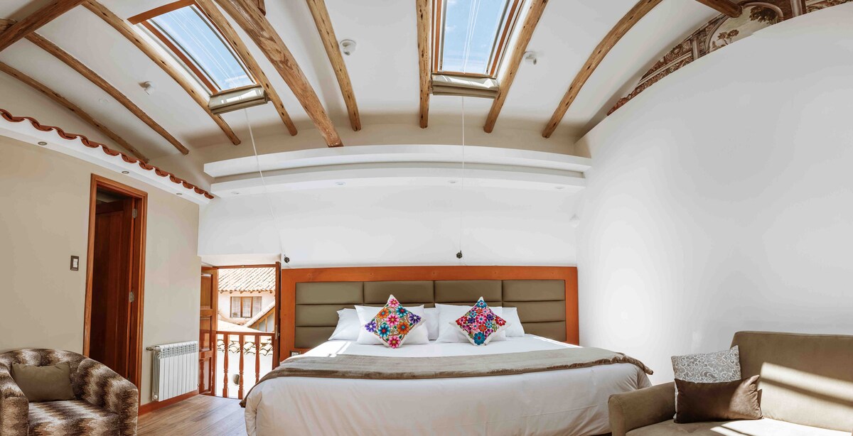 Notre maison est une suite romantique au caractère artistique. Tous les meubles et la décoration ont été conçus et fabriqués par les célèbres artisans de l'association Don Bosco. Vous disposerez d'un espace privé pour vous et votre partenaire avec une cheminée et une vue sur le jardin. Notre lit est un LIT COMPLET. - Propreté : notre personnel d'entretien est professionnellement formé pour que nos maisons soient impeccables et bien rangées pour chaque voyageur. - Emplacement : nous sommes situés au cœur du centre historique de Cusco.
