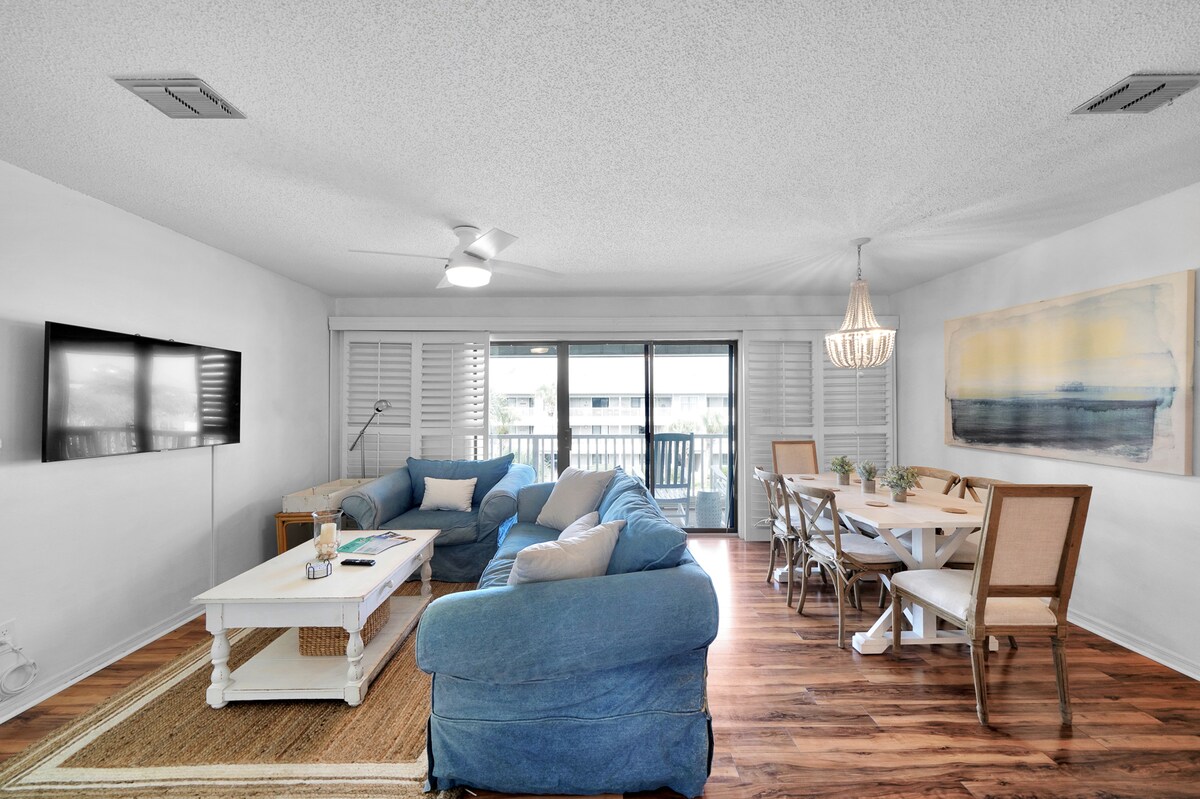 Imprégnez-vous de la vie à 30A! Twickenham est un condo lumineux de 2 chambres/2 salles de bain qui vous donne un accès rapide à la plage, une piscine communautaire étincelante et un bateau à moteur privé pour une exploration facile. • Chambres confortables avec des draps haut de gamme • Cuisine équipée d'ustensiles de cuisine, de vaisselle, de café et plus encore • Vélos, équipement de plage et stationnement gratuits • Téléviseurs intelligents + Wi-Fi haut débit • Caméras de sécurité à l'extérieur • Animaux bienvenus Superhôte, plus de 100 commentaires élogieux! Réservez vos dates maintenant avant qu'elles ne disparaissent.