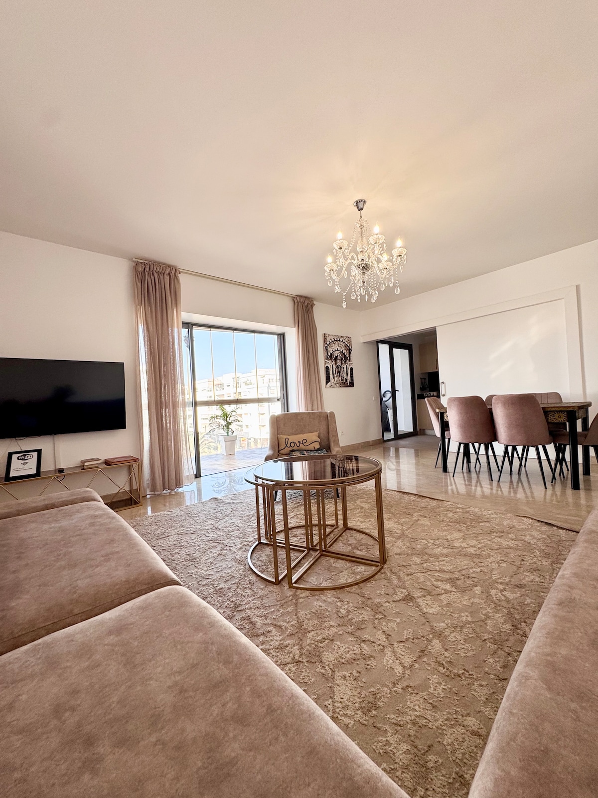 ✨ Récemment rénové 3BR/2BA dans le complexe de la marina exclusive d'Agadir. Parfait pour les familles ou les amis qui cherchent un séjour paisible et élégant. Spacieux, central et accessible à pied — avec cuisine complète, climatisation dans chaque pièce, télévision intelligente et douches à effet pluie. Ne convient🚫 pas aux groupes d'hommes célibataires qui veulent faire la fête. 📄 Les couples marocains doivent fournir un certificat de mariage valide.