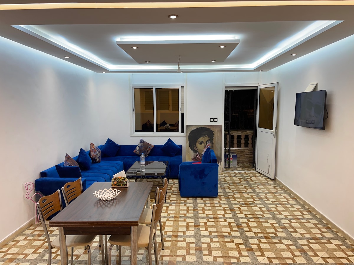 Ce bel appartement entièrement équipé, au design authentique et paisible, est idéal pour des vacances en famille ou un voyage d'affaires. Son emplacement privilégié vous permettra de profiter pleinement agadir et de ses environs avec un parking gratuit devant votre porte. Cet appartement est situé au centre d'Agadir, à 7 minutes à pied du Souk Sidi Youssef, à 10 minutes en voiture de la plage d'Agadir, dans un quartier très calme avec parking gratuit.