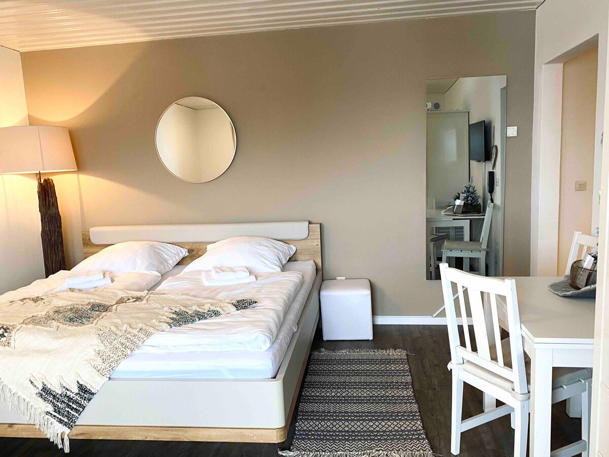 Aménagement chaleureux dans une ferme historique, chambre avec lit double, salon avec coin repas et canapé-lit pour 2 personnes, petite cuisine, salle de bain, au calme dans petit village, au pied de la montagne, départ idéal pour des randonnées à pied, à vélo, pour des excursions dans les alentours ou pour faire du ski de fond. Distances : 20 min Chiemsee, 25 min Bad Reichenhall, Traunstein, 35 min Salzbourg, Reit im Winkl/Steinplatte, 45 min Berchtesgaden, Koenigsee, Almwelt Lofer.