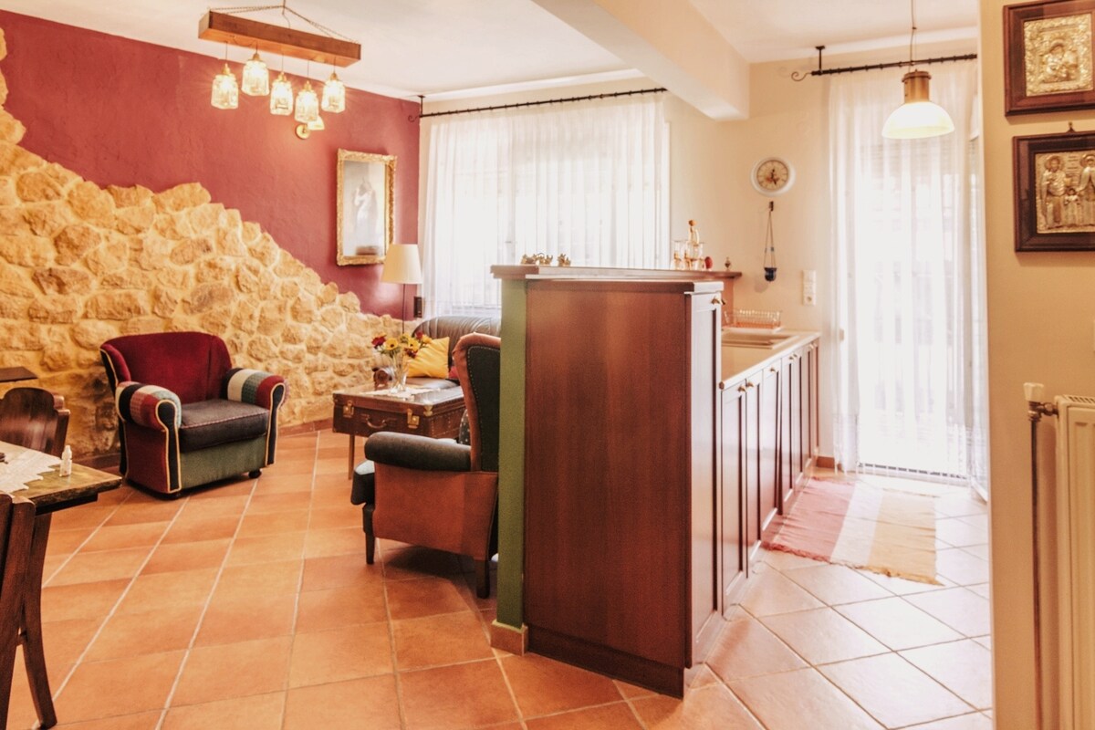 Profitez de moments de détente dans un appartement entièrement rénové dans la ville de Ioannina, à 3 minutes à pied du centre-ville. Convient aux familles, aux couples, aux groupes et aux voyageurs individuels. Il dispose du chauffage central, de la climatisation, d'une cuisine entièrement équipée, d'une salle de bain privée, d'une télévision et d'un balcon. Un parking payant est disponible à proximité. Nous disposons d'un café sur la place Pargi, « To Kolonaki », qui offre des moments d'insouciance avec du café et des boissons alcoolisées.