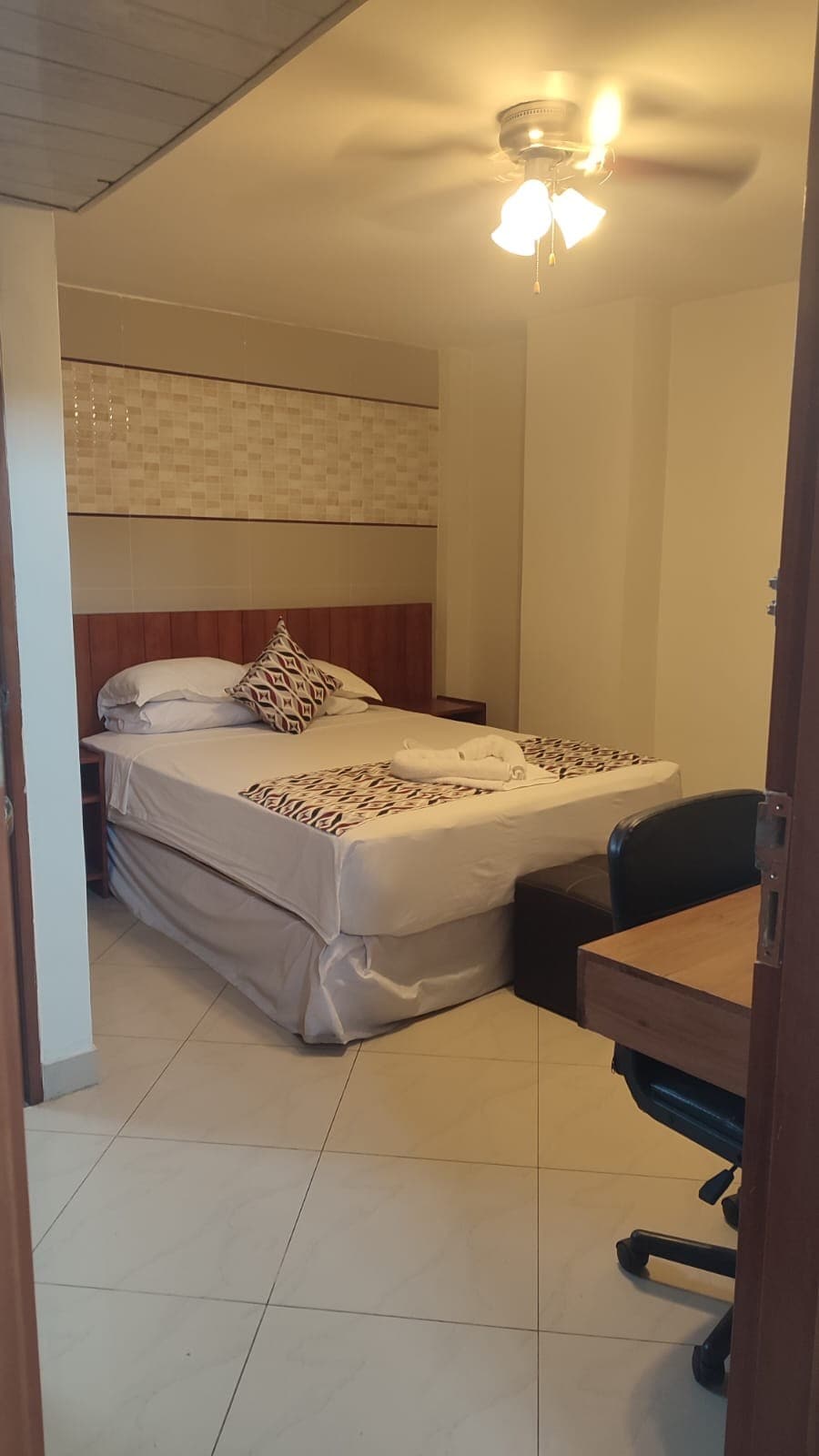 Situé dans le centre d'Iquitos, Epoca Hotel allie confort, espace et chaleur. Notre chambre familiale peut accueillir jusqu'à 7 personnes, idéale pour les familles, les groupes ou les voyageurs à la recherche de repos et de connexion. Profitez de la climatisation et du WiFi haut débit dans un cadre calme et avec une excellente attention.
