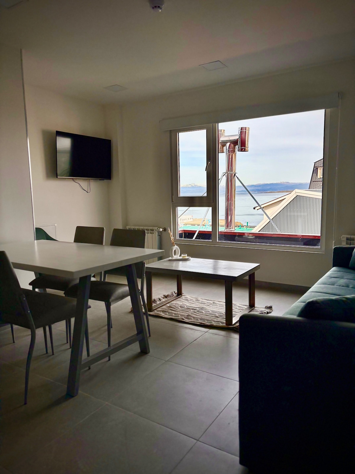 Disfrutá de una experiencia con estilo en este alojamiento céntrico. Exclusivo departamento de un dormitorio tipo loft con amplios ventanales y vista privilegiada al Canal de Beagle. El baño se encuentra en la planta alta. Esta ubicado en moderno edificio a estrenar, sobre la avenida principal del centro turístico de la ciudad. Su ubicación y vistas son privilegiadas Mobiliario de estilo moderno, con cortinas y cubre edredones al tono.
