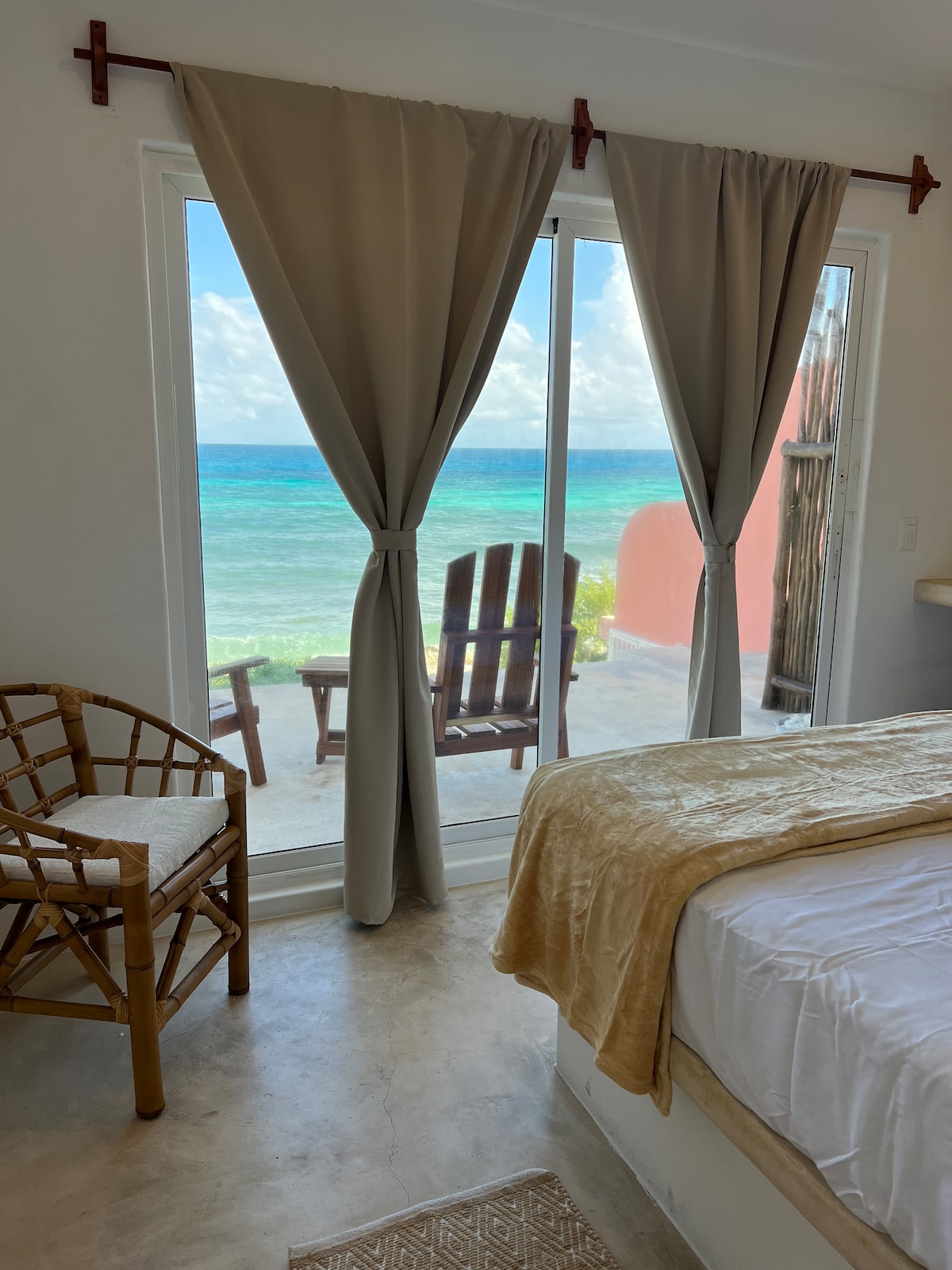 Pearl’s Casita is a charming and cozy retreat, designed for ultimate comfort and relaxation. It features two queen-size beds, a private full bathroom, and a fully equipped kitchenette. The casita also offers a small front patio for outdoor relaxation. Enjoy modern amenities like a Smart TV, high-speed Wi-Fi, air conditioning, and ample storage. You’ll have access to the shared rooftop pool, terrace, and other hotel amenities. Perfect for couples or small groups seeking a peaceful Isla Mujeres.