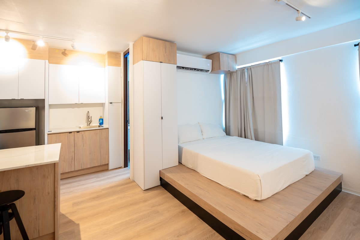 Penthouse Apt. studio en ESJ Towers condo-hôtel à 5 minutes de l'aéroport, accès direct à la plage privée, piscine, nuit en direct, restaurants, centres commerciaux, supermarchés, parcs à proximité de tout. Vous adorerez la plage, la vue sur les montagnes. Parfait pour les couples, les aventuriers en solo, les voyageurs d'affaires, les familles, les groupes. 1 parking privé intérieur affecté. Remarque : la piscine, le restaurant, sont fermés entre autres services pour rénovation, je m'excuse pour le désagrément.