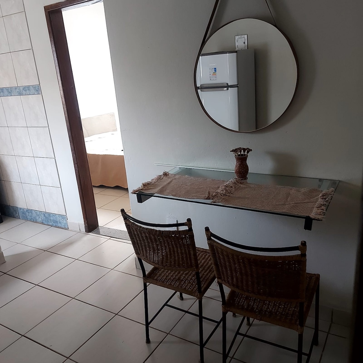 Espaço ideal para quem busca tranquilidade e praticidade. Localizado em uma rua calma e ao mesmo tempo próxima de tudo: farmácias, supermercados, posto de combustível, academias e outros serviços essenciais. O ambiente conta com cozinha equipada (fogão, geladeira, armário e filtro de água), sala de estar com TV e Wi-Fi disponível em todos os ambientes, oferecendo conforto e conveniência para a sua estadia.