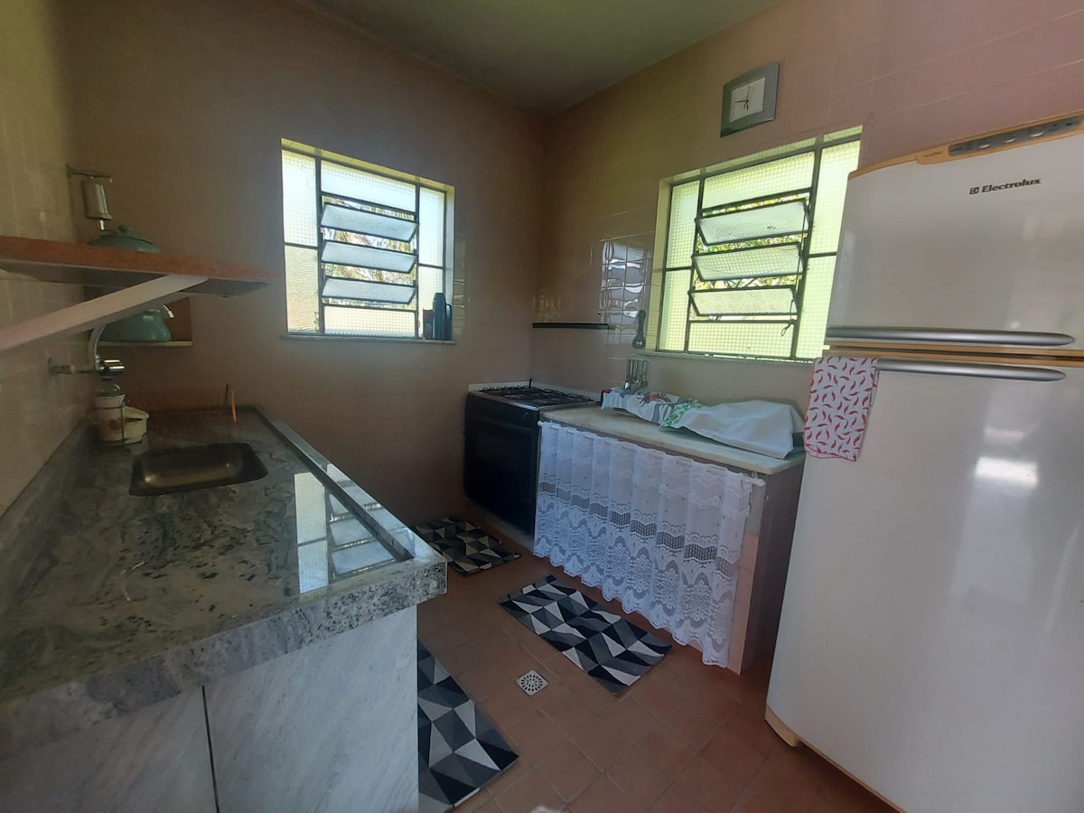 Maison spacieuse et confortable au milieu de la forêt atlantique, avec ruisseau, vue sur les montagnes et super calme. Parfait pour les moments en famille et la reconnexion. À 10 minutes du centre d'Itaipava et facile d'accès. L'espace La maison dispose d'une cheminée intérieure et extérieure, la suite dispose d'un lit queen size, d'une télévision de 50 pouces, de la climatisation et du chauffage. Les hamacs, la pergola, le barbecue et la douche rendent l'espace de loisirs super agréable.