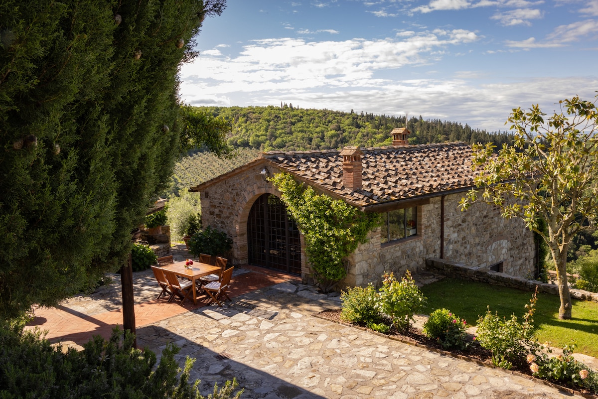 Agriturismo Il Colle est situé sur l'une des collines du Chianti. La propriété a été entièrement rénovée, surplombant les vallées du Chianti et offrant une vue splendide sur les collines environnantes et la ville de Florence. L'appartement est complètement indépendant, sur deux étages reliés à l'intérieur, et dispose d'un jardin privé bordé de chênes centenaires et de cyprès toscans. La restauration a conservé le style architectural toscan original des granges rurales.