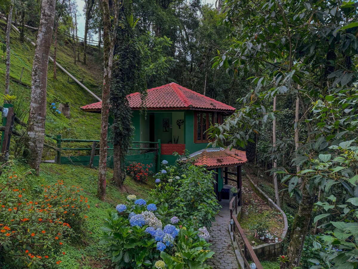 Charmante maison d'hôtes, entourée de la forêt de Serra da Mantiqueira, construite presque entièrement en bois, offre 3 grandes suites confortables pour les couples, avec de délicieux lits Queen, salles de bains privées équipées d'un sèche-cheveux et abondante eau minérale chauffée par le système solaire !