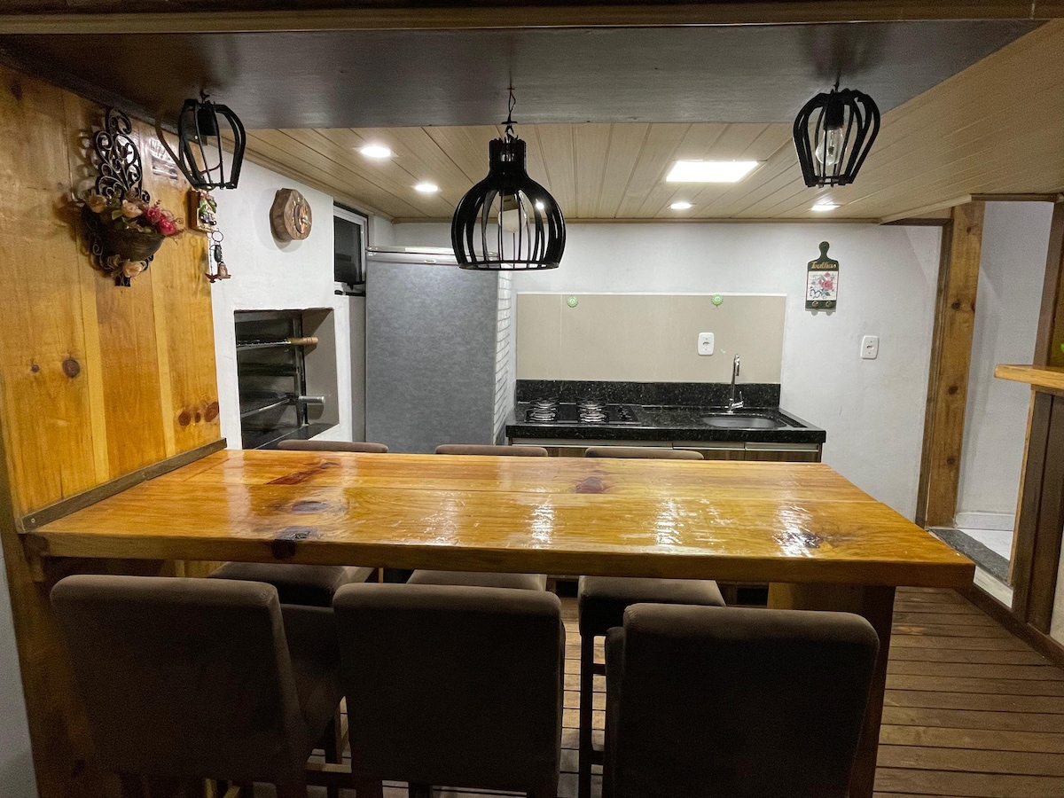 Aconchegante et clôturée de nature pour un maximum de 8 voyageurs, il y a : 3 chambres à coucher avec 1 suite climatisation, wifi 2 salles à manger (intérieures et extérieures), cuisine et balcon avec barbecue C'est idéal pour ceux qui aiment pêcher! Par la rue de l'arrière-plan, il est possible d'y accéder une plage (distance de 50 mètres) Parking : espace pour 2 voitures Quelques distances : 5 km Forte Marechal Luz 12 km Enseada 15 km de Prainha 20 km Centro Histórico