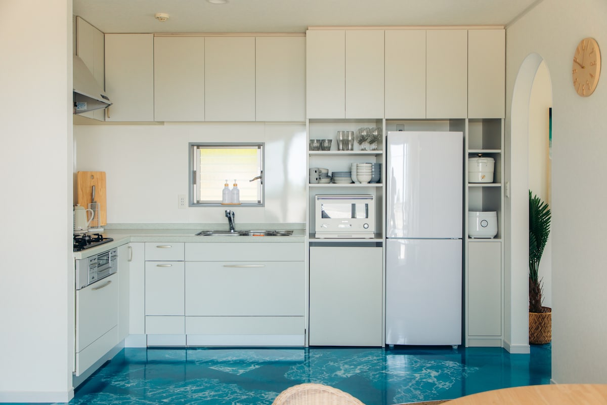 Maison scandinave spacieuse entourée de verdure. Le jardin et la terrasse sont en annexe. Une promenade de 5 minutes jusqu'à la plage d'Ohama. Vous pourrez profiter d'un barbecue dans le jardin. Il y a une serviette de toilette, une serviette de bain, une brosse à dents, un Toner,,etc. Nous fournissons pour vous un parasol , une planche de corps, un traîneau pour le ski de sable, des chaises extérieures, une glacière, un lit bébé. À 5 minutes en voiture de la maison à la grotte de Ryugu et au spot de ski de Geo !
