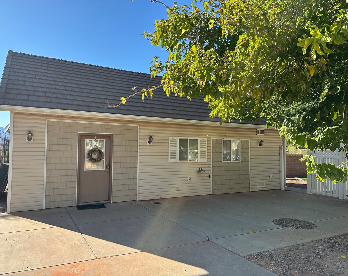 Cette chambre (275 pieds carrés) avec sa propre entrée vous rajeunira en vous reposant pour une autre journée de plaisir dans la région sud de l'UT. Il dispose d'un lit Queen Size confortable, d'une télévision à écran plat 42", d'une télévision directe, d'une télévision Apple, d'une salle de bain privée, d'un micro-ondes et d'un mini-réfrigérateur. Cette chambre est l'endroit idéal pour s'amuser et partir à l'aventure, ou simplement pour se détendre. Situé près de Snow Canyon, de l'Université Rocky Vista et de Tuacahn avec randonnée, vélo, art, Utah Senior Games, St George Marathon et Ironman pour en profiter.