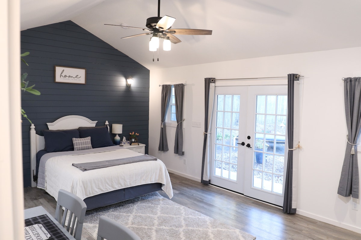 Détendez-vous dans ce logement tranquille situé dans la campagne de Weaverville, juste à l'extérieur d'Asheville. Cette « croft » de construction RÉCENTE est située sur un terrain calme, à l'écart des routes principales et de l'agitation de la vie, parfaitement aménagée pour tous ceux qui essaient simplement de s'évader un peu et de profiter de la nature. Détendez-vous dans les chaises à bascule sur le porche, observez les étoiles au sommet de la colline avec une pollution lumineuse minimale ou installez-vous confortablement avec Netflix dans le lit king-size.