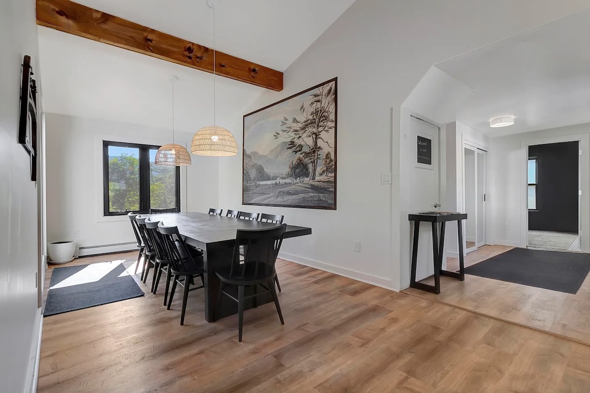Un magnifique chalet situé entre les montagnes et le lac Sainte-Catherine. Que ce soit sur la terrasse ou à l'intérieur de la maison, vous pourrez profiter de la vue tranquille et sereine sur les montagnes et les lacs. D'une superficie de plus de 3 000 pieds carrés, la maison offre plusieurs espaces de rassemblement, notamment un ou plusieurs salons séparés, une cuisine conviviale, une table de billard et un bar. Un logement parfait pour une retraite. Situé à moins de 10 minutes du parc et du club de campagne du lac Sainte-Catherine et de nombreuses options de randonnée et de vélo de montagne pour les voyageurs actifs.