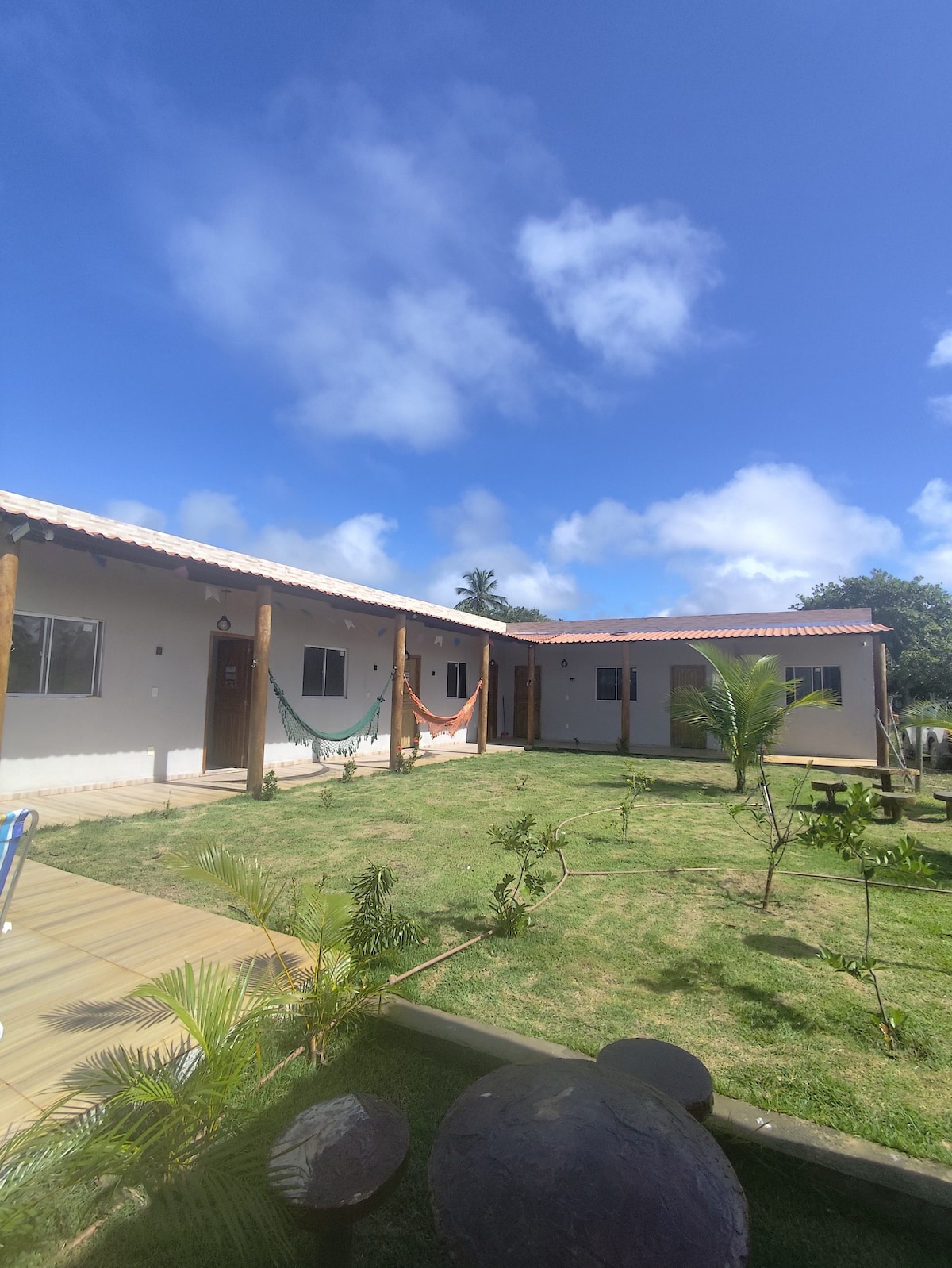 Povoado Coqueiros à 4 km de Mangue Seco. Un refuge dans la nature, pour ceux qui souhaitent se déconnecter, au son des oiseaux et de la nature des reposingas et des dunes. Mer super propre parce qu'elle n'a pas de barres ou de résidences qui polluent. Une plage pratiquement déserte à 800 mètres de la maison, et l'accès se fait à pied, en buggy ou en voiture avec traction. La place et les restaurants sont à environ 300 mètres. Pour les amoureux de la nature rustique qui ne recherchent pas le luxe et ont juste besoin de se déconnecter. Mangue Seco est à 5 km.
