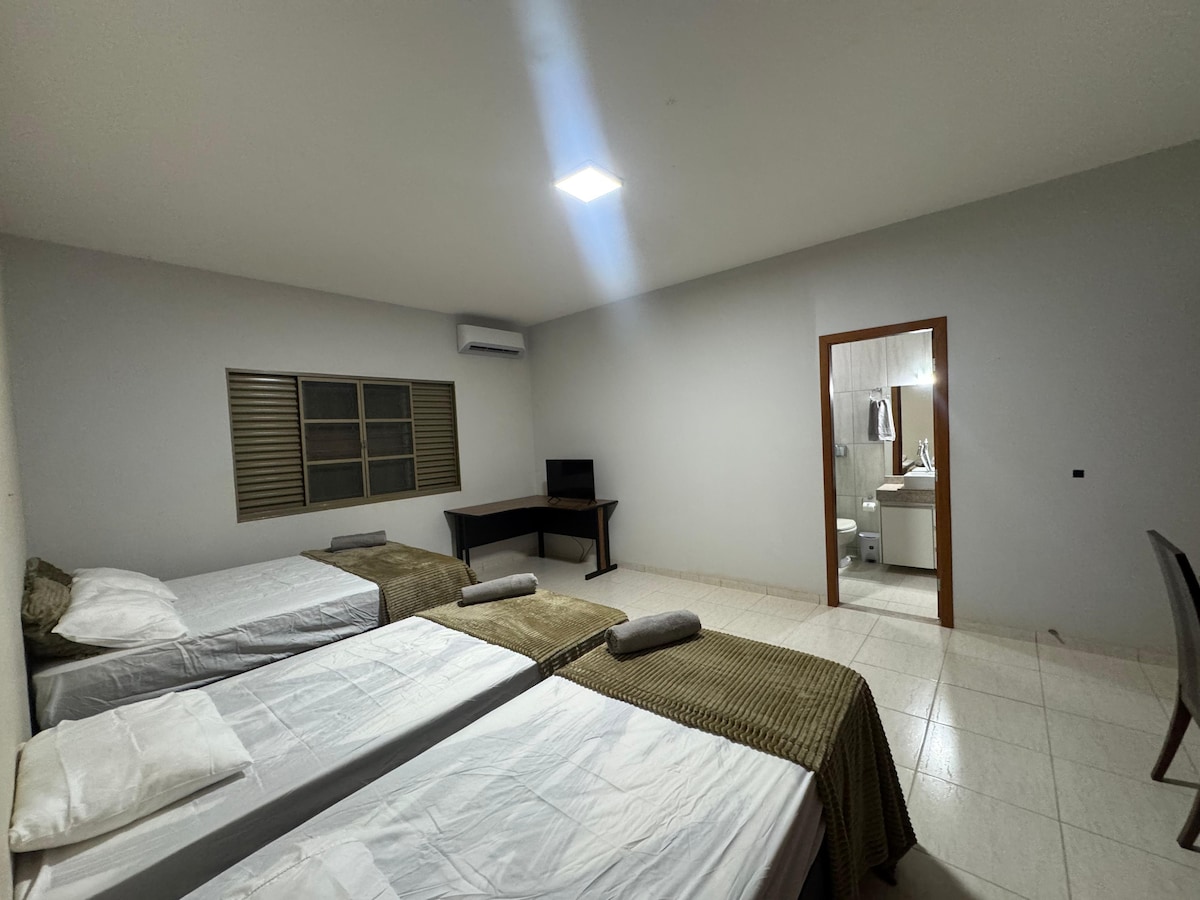 ✨ Le logement • 🛏 2 chambres, comme suit : • 1 suite avec un lit double • 1 chambre avec 2 lits simple • 🚿 2 salles de bain • 🍳 Cuisine complète • Chambre confortable🛋 avec télévision • 🌬 2 ventilateurs • 📶 Wi-Fi ; • 🍖 Grand espace de loisirs • 🚗 Garage pour 2 voitures maximum • 🛏 Draps inclus 📍 Emplacement privilégié • 🛍 3 minutes du centre commercial • 🎡 4 minutes du Parc des Expositions • ♨ 8 minutes de l'hôtel Fazenda Thermas Bom Sucesso • 🌊 À 10 minutes du lac Bom Suces
