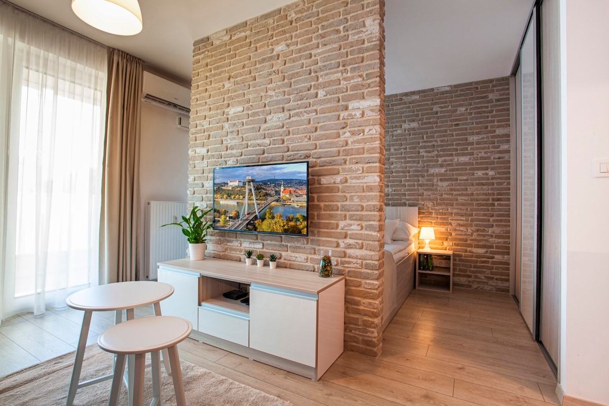 Appartement d'une pièce avec balcon et parking gratuit sur une place de parking réservée juste à côté de la maison. Appartement de 30 m2 avec vue sur l'Autriche et le coucher du soleil Les animaux sont également autorisés. Équipement de l'appartement : - 2 grandes et 2 petites serviettes - gel douche, shampoing, - produits de nettoyage - café, thé L’appartement est situé au début du quartier de Záhorská Bystrica à Bratislava. L’accessibilité est à 2 minutes à pied de l’arrêt de bus (Krče), 20 min. en bus de la gare principale, 15 min. en voiture