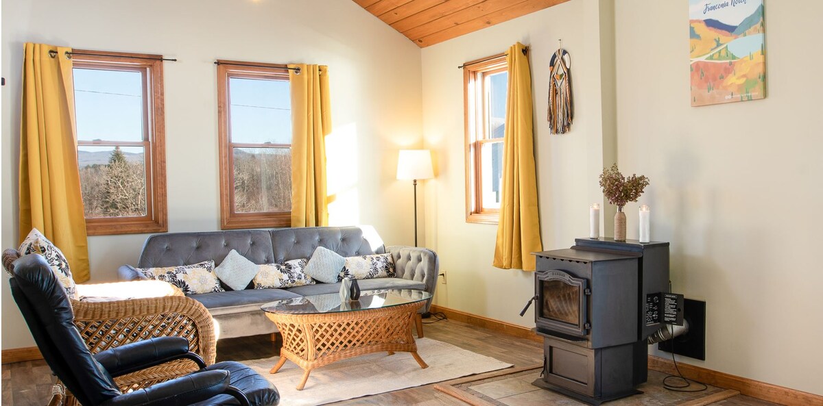 Bienvenue dans notre chalet avec vue sur la montagne ! Avec une vue magnifique sur la montagne, cette maison est située au centre des attractions de la région ! Le Mountain View Grand Resort se trouve juste en bas de la route. Bretton Woods et Cannon sont à quelques minutes en voiture. Sentiers de randonnée, lacs, pistes de ski et de motoneige à proximité ! Proche de Littleton, Bethlehem et Lancaster ! Profitez de la cour arrière paysagée avec foyer et patio abrité. Restez à l'intérieur et profitez de la vue depuis le solarium, ou blottissez-vous sur le canapé dans le salon confortable avec poêle à bois.