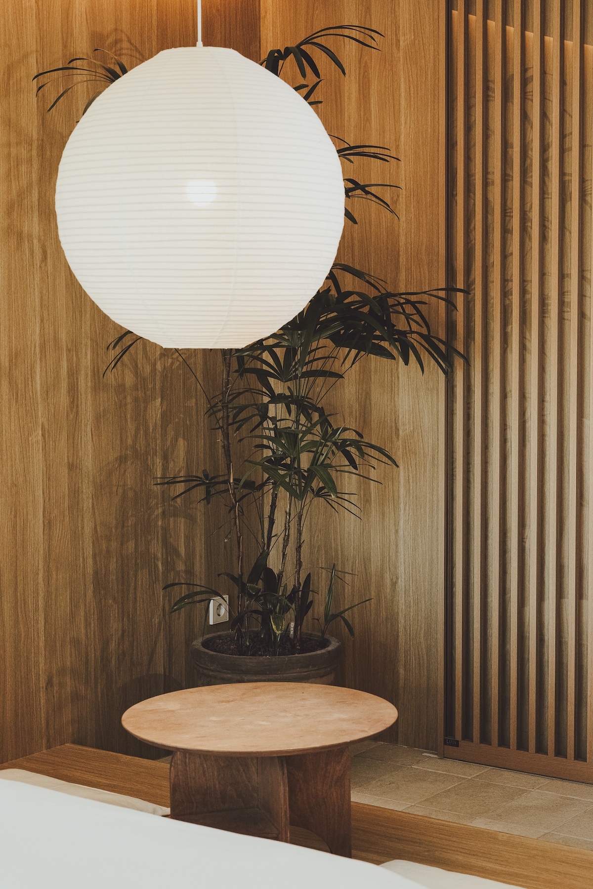 On voulait que cette pièce soit un endroit de « repos profond ». Le temps loin de la vie quotidienne devrait se sentir simple et calme, pas plein de stimulation. Nous avons façonné l'espace avec des lignes épurées, des tons doux et la chaleur du bois. Ce n'est pas flashy, mais les détails offrent un confort calme. Une table basse vous invite à vous asseoir, écrire ou simplement faire une pause. Nous avons placé quelques courts essais et pistes ambiantes. Déterminé à être savouré lentement. Vous n'avez rien de spécial à faire ici. Restez simplement et reposez-vous bien.