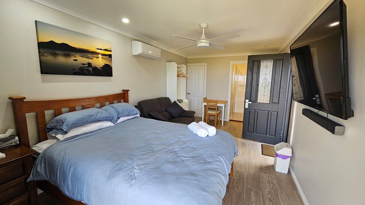 Appartement indépendant et bien aménagé d'une chambre situé dans un quartier calme, à proximité des transports en commun et à quelques pas des restaurants, des commerces et de la plage. Il dispose d'une arrivée autonome facile et d'un parking hors de la rue. Un placard de cuisine moderne dispose d'un mini-réfrigérateur, d'un micro-ondes (pas de cuisinière), de vaisselle et de couverts, ainsi que d'une sélection de thés et de café moulu. Une grande salle de bains moderne abrite un lave-linge et un sèche-linge. Parfait pour une escale relaxante ou un séjour plus long sur la magnifique côte de Coffs.