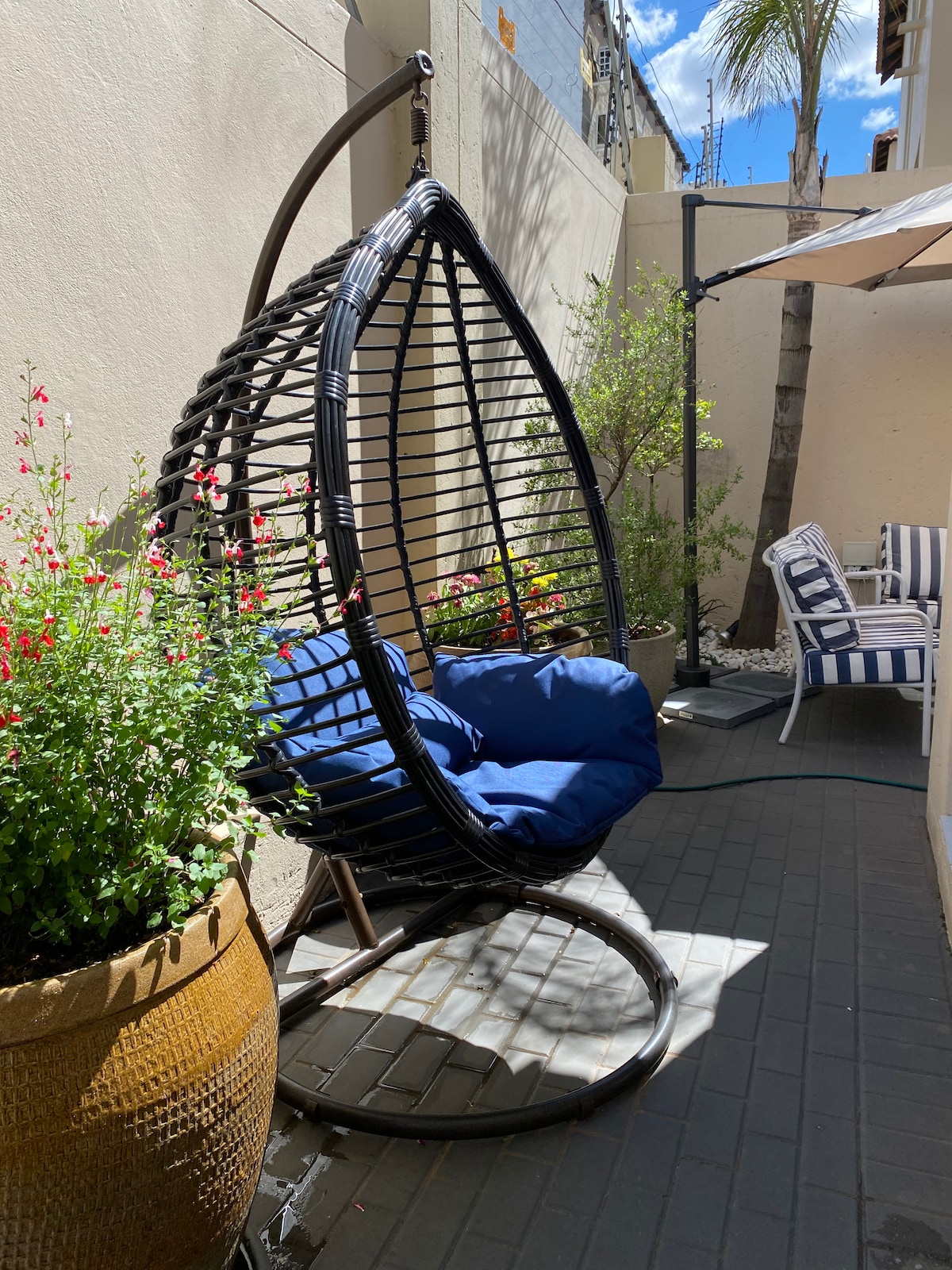 Escapade africaine🌿 élégante — À seulement 15 minutes de l'aéroport OR Tambo, cette retraite de jardin privé offre un charme rustique et un luxe raffiné. Niché sous un toit de chaume saisissant, l'appartement offre une vue luxuriante, une literie haut de gamme et une atmosphère sereine. Profitez d'un espace barbecue à l'abri, d'une alimentation électrique autonome et d'une intimité totale. Parfait pour des escapades tranquilles, pas pour des fêtes. Un stationnement sécurisé et des commodités à proximité complètent ce séjour paisible et apaisant. Une destination en soi.
