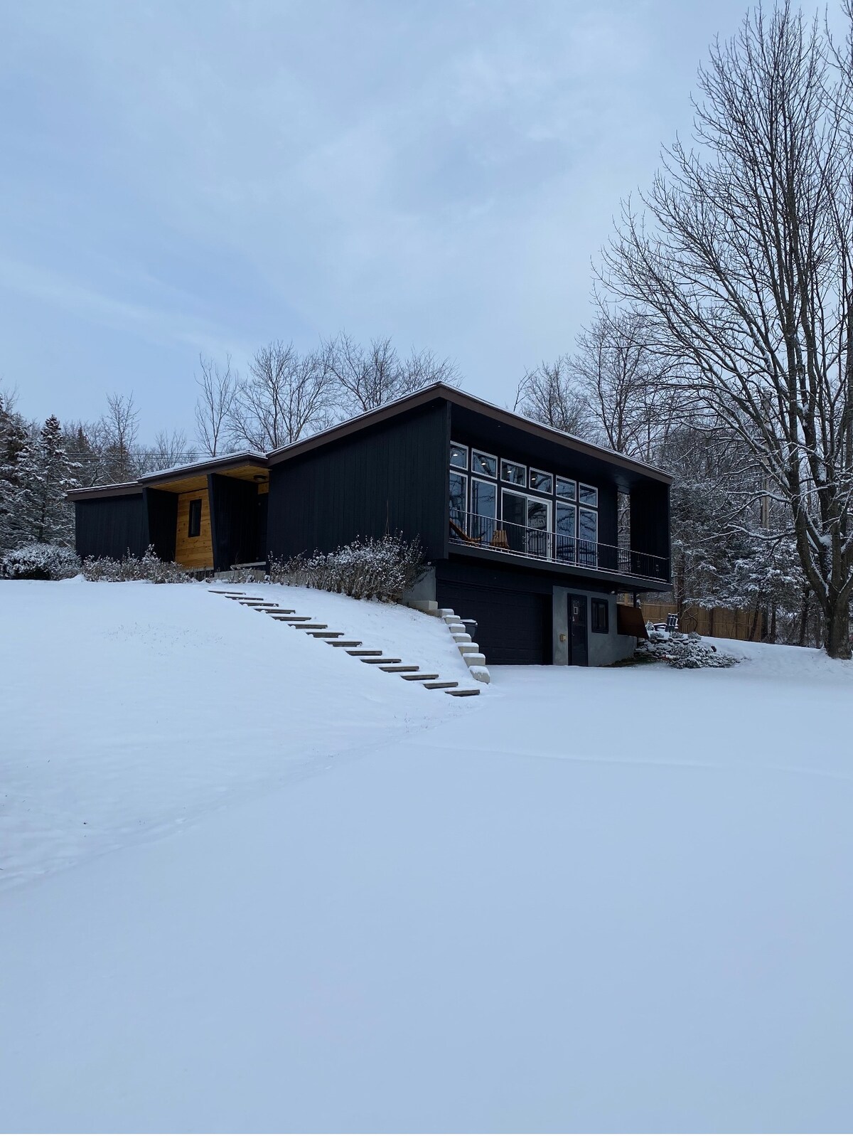 Studio loft de luxe avec ascenseur et stationnement sur la rue principale - Maison de l'Applefest, des vignobles et des marchés agricoles. Marchez jusqu'à tous les grands restaurants et magasins. Ski à proximité! Douche à vapeur, lit réglable Zero Gravity avec massage. Cuisine design, canapé-lit en velours Kardiel, foyer électrique, téléviseur intelligent HD de 60 po. Fenêtre confortable avec vue parfaite pour le café du matin! Keurig, café, thé et eau en bouteille fournis. Détendez-vous et faites-vous plaisir : laissez-nous le ménage au moment du départ !
