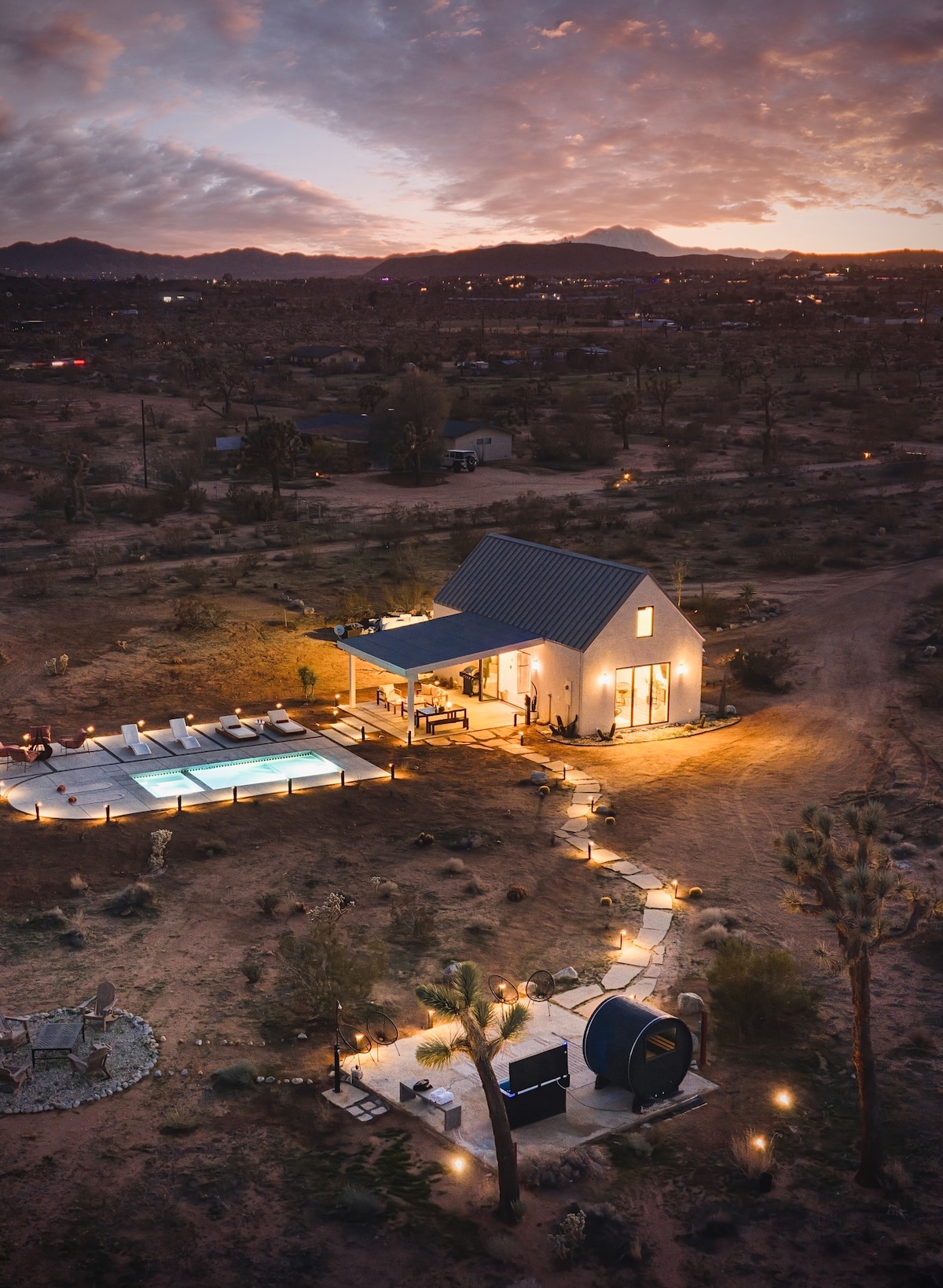 Maison avec piscine sous le soleil de minuit Joshua Tree
