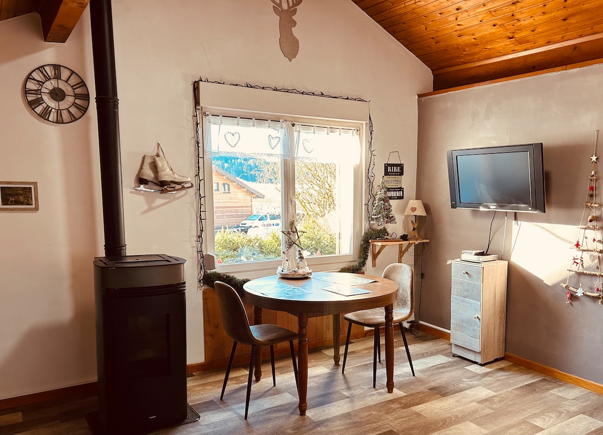 Au coeur du parc Naturel Régional du Haut Jura , à Chaux Neuve, venez profiter d'un séjour authentique au plus près de la nature. Maisonnette calme et cosy, disposant d’un extérieur clôturé (250m2). Tout confort, logement équipé de la fibre (wifi, TV), ainsi que d'un poêle à granulés. Station de ski dynamique : téléski, ski de fond, tremplin de saut à ski, biathlon, site nordique du Pré Poncet à 5km. À proximité : sentiers de randonnée et de VTT balisés , nombreux lacs et cascades.
