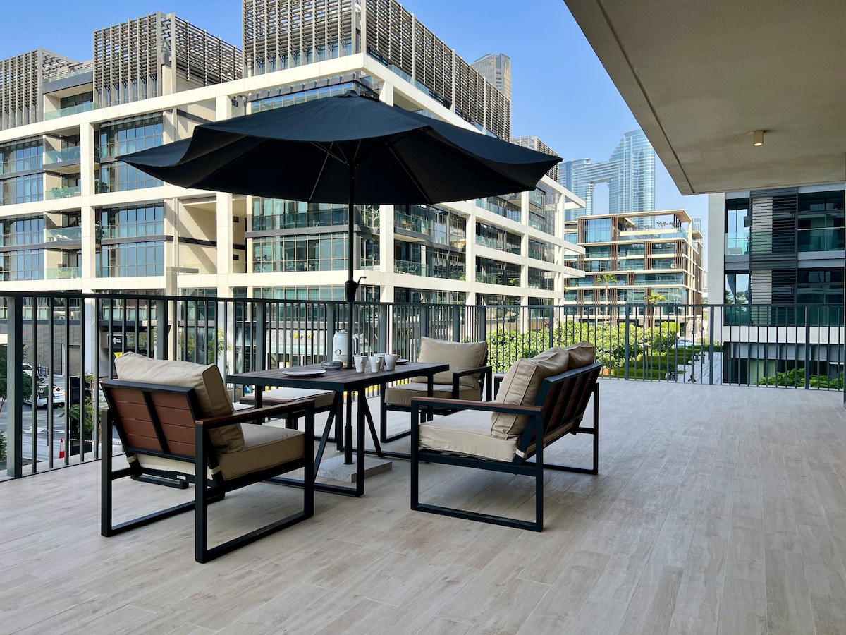 NOUVEAU! Immense balcon avec vue sur Burj | Piscine à débordement | PS5 | 4 chambres