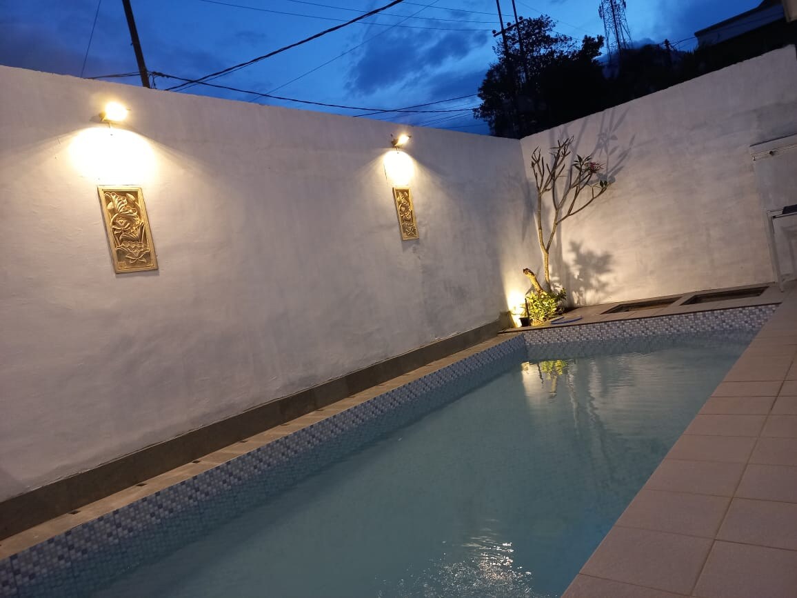 Bienvenue dans votre évasion parfaite ! Cette superbe villa moderne de style loft est un joyau caché qui combine luxe, confort et design unique. Niché dans un cadre paisible et privé, la villa dispose d'une piscine privée et d'une villa à haut plafond. Que vous travailliez à distance ou que vous voyagiez en famille, la Villa Salsabila à Malang est un excellent choix d'hébergement lorsque vous visitez Malang. Grâce à son emplacement pratique, la propriété offre un accès facile aux destinations incontournables de Malang.