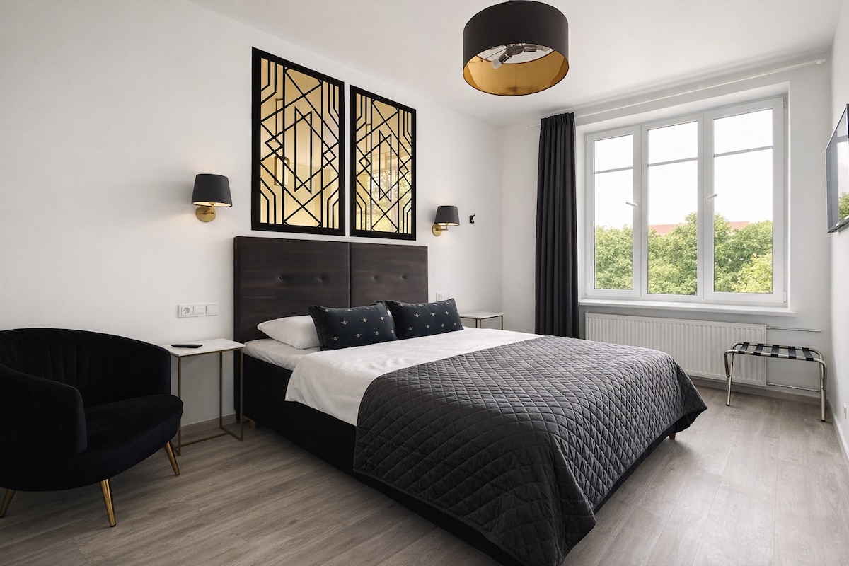 Un studio confortable d'une chambre élégant et nouvellement meublé avec des équipements hôteliers au cœur de la vieille ville. Il dispose d'un lit double confortable, d'un canapé, d'une cuisine équipée avec une sélection de thés variés, d'un bureau polyvalent pour le travail et les loisirs, d'une salle de bains avec douche. Comme l'appartement est situé dans la vieille ville, il est entouré par le marché de la vieille ville, des bars animés ainsi que de belles rues étroites. Un code clé vous sera envoyé pour entrer dans votre chambre. Une copie de votre pièce d'identité vous sera demandée pour l'application d'enregistrement en ligne.
