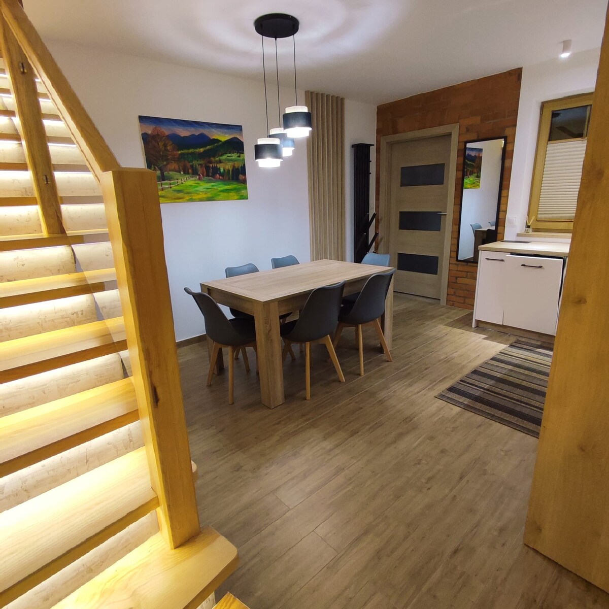 Lost Road House est une oasis moderne avec un accès aux montagnes à portée de main. Idéalement situé entre les Tatras et les Pieniny, dans le Spisz polonais. C'est l'endroit idéal pour se détendre, se connecter avec la nature et observer les montagnes du lever au coucher du soleil. Le salon et la cuisine sont entièrement équipés et prêts à être partagés. Chaque chambre dispose d'un lit confortable avec une literie de luxe et de fenêtres du sol au plafond avec une vue magnifique sur les Tatras. Wifi / Mocca Master / terrasse de 80 m2 Nous vous invitons