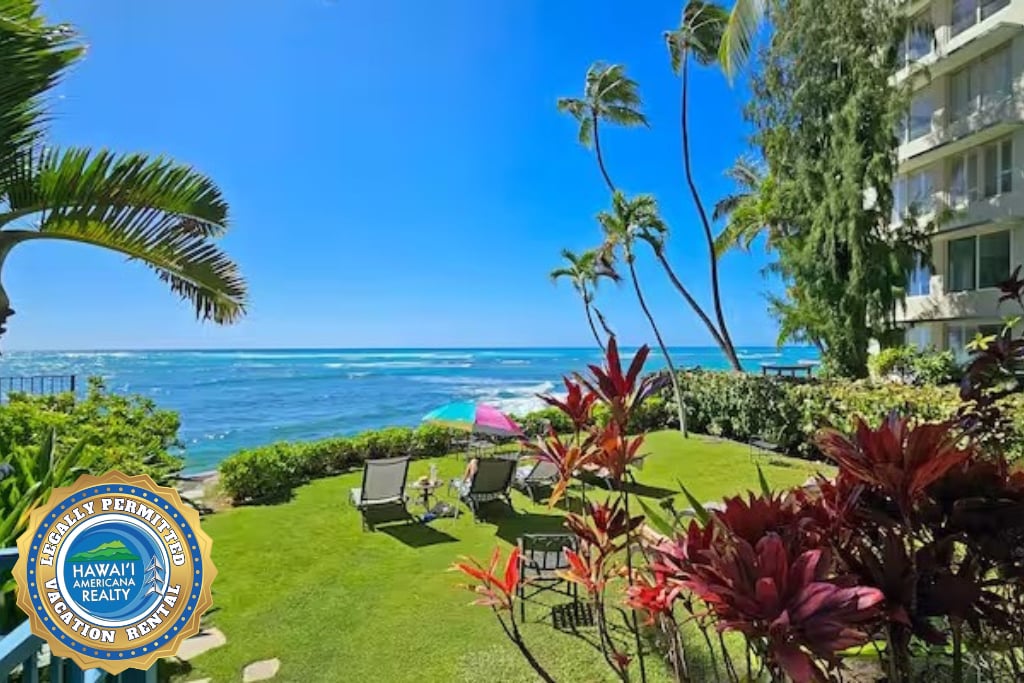 MEILLEUR EMPLACEMENT ET VUE SUR L'OCÉAN ! À quelques pas de la plage de Waikiki et de toute l'action ! Pas de voiture nécessaire Condo récemment rénové à 1/2 pâté de maisons de la plage au 9e étage du Waikiki Grand Hotel. En face du zoo dans le parc Kapiʻolani. Profitez de 2 balcons privés avec vue sur l'océan/Diamond Head. 1 lit Queen et 1 lit Queen Pull Out. Séparateurs fournis pour convertir en 1 chambre si nécessaire. Voir les photos de la kitchenette complète et de l'équipement de plage inclus LOCATION DE VACANCES LÉGALE Toutes les taxes/frais inclus : vos vacances en famille ou en solo commencent ici !