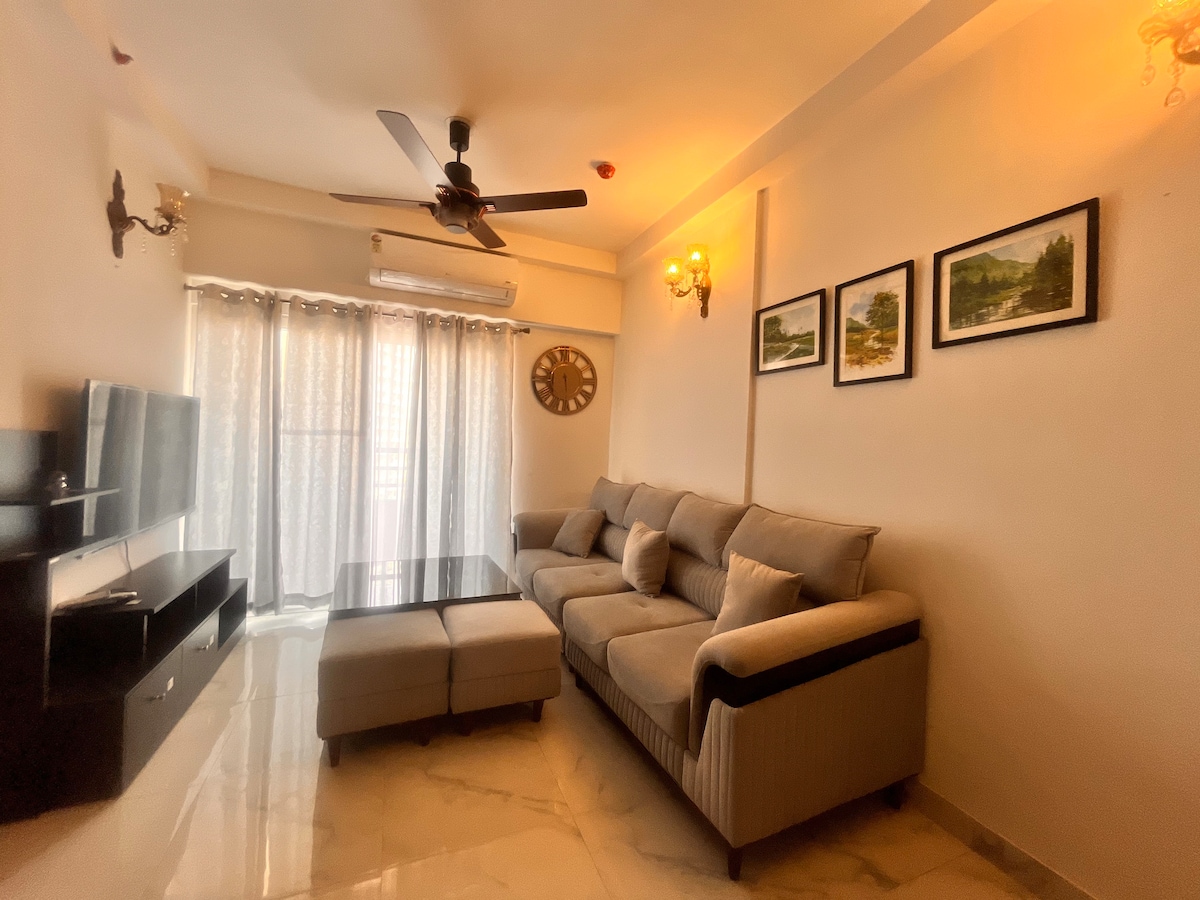 Flottez dans une poche de paix à Golden Hour Hideaway - un confortable 1BHK au 6ème étage avec une vue sur le coucher de soleil de rêve et une ambiance émouvante. Détendez-vous dans le salon confortable, cuisinez dans la cuisine impeccable et imprégnez-vous de la magie du balcon. Avec un marché animé juste en bas (nourriture, salon, pharmacie et plus), tout est à portée de main. Venez pour la vue, restez pour l'ambiance. 🌅✨