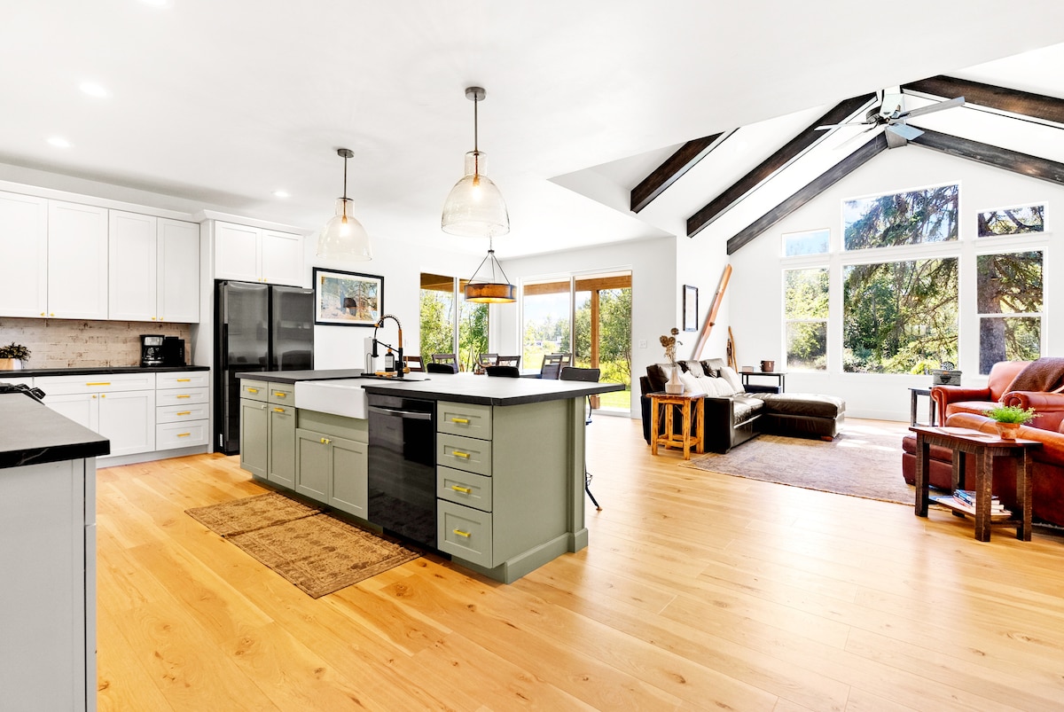 Retirez-vous dans un espace moderne et paisible après une journée passionnante à explorer Glacier Park ou à skier à Whitefish Mountain. Niché dans un verger et entouré de chevaux au pâturage, vous pourrez vous détendre sur la terrasse avec une vue magnifique sur les montagnes Rocheuses. Avec une cheminée et un espace de jacuzzi partagé, vous trouverez une retraite paisible pour profiter au maximum de votre visite dans la vallée de Flathead. Maison similaire sur la propriété si vous souhaitez amener des amis ! Envoyez-moi un message pour un lien.