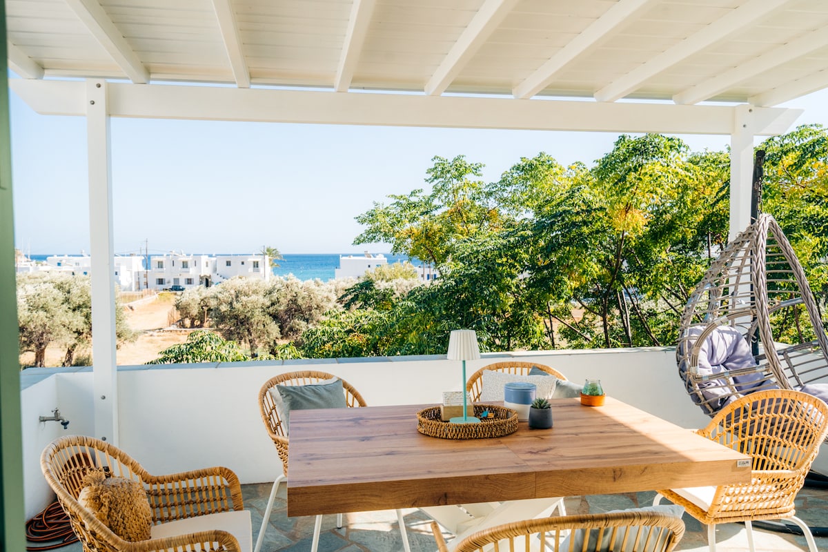 Nos chambres sont situées a 60 metres de la magnifique plage de Kamares. Le port est a 600 metres,village sympathique ou vous trouverez toutes les commodites; tavernas, cafes, commerces, artisans potiers (specialite de l ile) ... Cette chambre en rez de chaussee est équipée d'un réfrigérateur- bouilloire- tv-air conditionné-wi-fi et d un grand jardin partagé avec les autres studios.Nous vous attendons dans un environnement calme et familial.