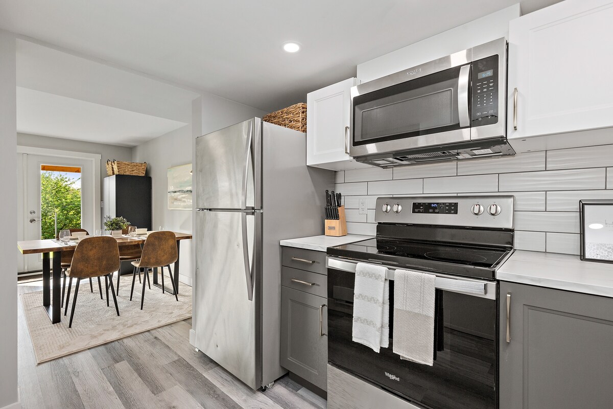 Une retraite relaxante pour les couples, les solos ou les voyageurs d'affaires. Au-dessus du sol, entrée privée, arrivée autonome. Stationnement gratuit. Très grand lit, buanderie dans la suite, WI-FI rapide. Cuisine entièrement équipée - café, déjeuner léger à emporter inclus. Faites fondre dans le sauna du baril, puis détendez-vous sur un patio isolé et abrité toute l'année avec une table de feu, des sièges confortables et un barbecue dans une cour arrière calme et clôturée. À 5 minutes de l'autoroute 1, à 10 minutes du centre-ville, à 55 minutes de Sun Peaks. Le camp de base parfait pour votre prochaine escapade.