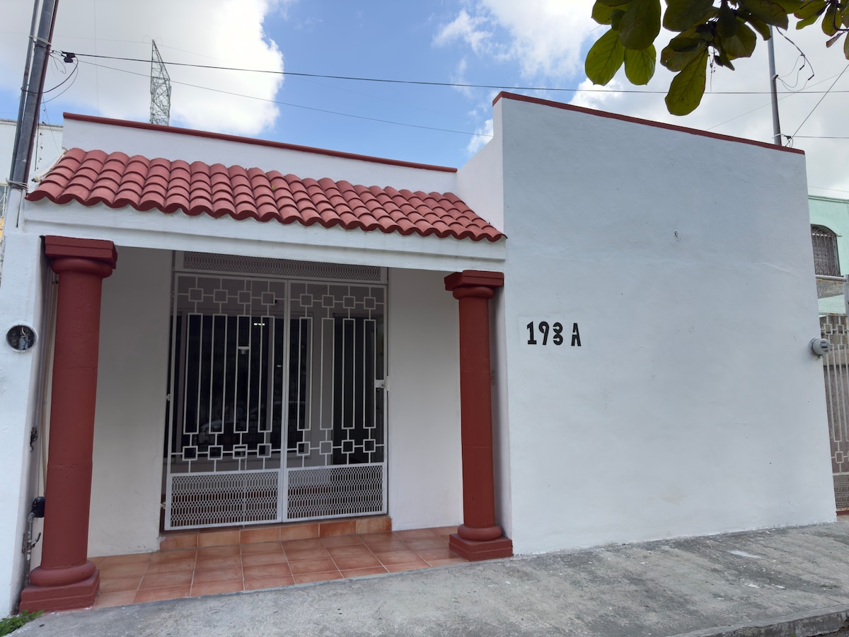 Bel appartement à l'étage. Il a tout ce dont vous avez besoin pour un séjour de quelques jours à quelques mois. L'appartement dispose d'une cuisine équipée, d'un salon, d'une salle à manger, d'une terrasse, d'un espace buanderie, de la climatisation, d'une télévision avec Netflix, du WIFI, de l'eau chaude et froide. Il est situé dans un quartier calme et sûr à proximité des principaux centres commerciaux et banques, ainsi que des hôpitaux (IMSS-T1). Il est également proche du centre-ville de Mérida, ainsi que du Paseo de Montejo.
