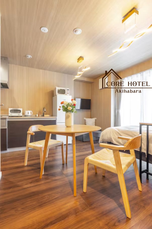Situé près d’Akihabara et d’Okachimachi, avec accès facile à plusieurs lignes de train, ce studio chaleureux au style boisé offre un séjour calme et moderne. Les 25㎡ comprennent un lit queen-size, un bureau, une TV 55 pouces et une imprimante. La cuisine dispose d’une cuisinière, micro-ondes, grille-pain, bouilloire BALMUDA, cuiseur de riz et ustensiles. Douche moderne, toilettes séparées, lave-linge et commodités. Un espace reposant, idéal pour affaires ou tourisme.