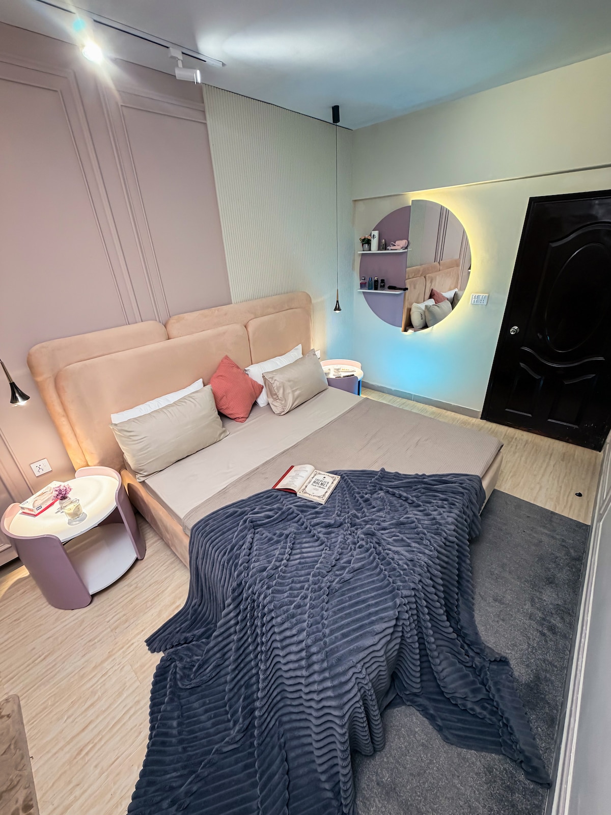 Entrez dans un appartement design unique juste à côté de CBTL PH6 conçu pour les amateurs de style. Doté d'une chambre rose ultra-luxueuse avec des détails élégants, cet espace allie sophistication moderne et confort douillet. Profitez d'une connexion Wi-Fi haut débit, de la climatisation, d'une cuisine entièrement équipée, d'une télévision connectée, d'une literie haut de gamme, de linge de maison frais, d'eau chaude, d'un accès par les escaliers, d'un deuxième étage, d'un emplacement central et d'une sécurité 24h/24 et 7j/7. L'une des propriétés les mieux notées et les plus appréciées, parfaite pour un séjour raffiné et confortable.
