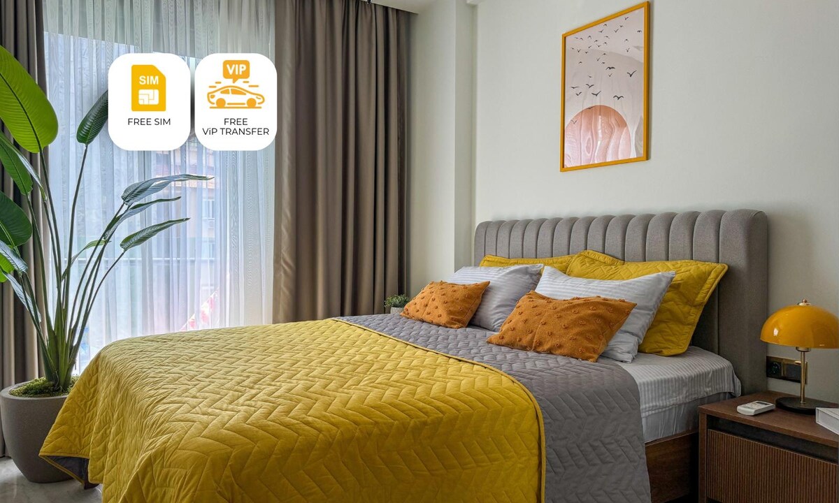 Appartement confortable 1+1, 60 m², avec un design moderne et tout ce dont vous avez besoin pour la vie. Situé dans un complexe avec une infrastructure de niveau 5 ★ : sécurité 24h/24, parking intérieur et extérieur, karaoké, cinéma, salle PlayStation, hammam, sauna, piscines. Tout ce que vous pouvez imaginer pour la détente et le confort est à votre disposition. L'appartement a un ensemble complet de commodités aux normes les plus élevées.