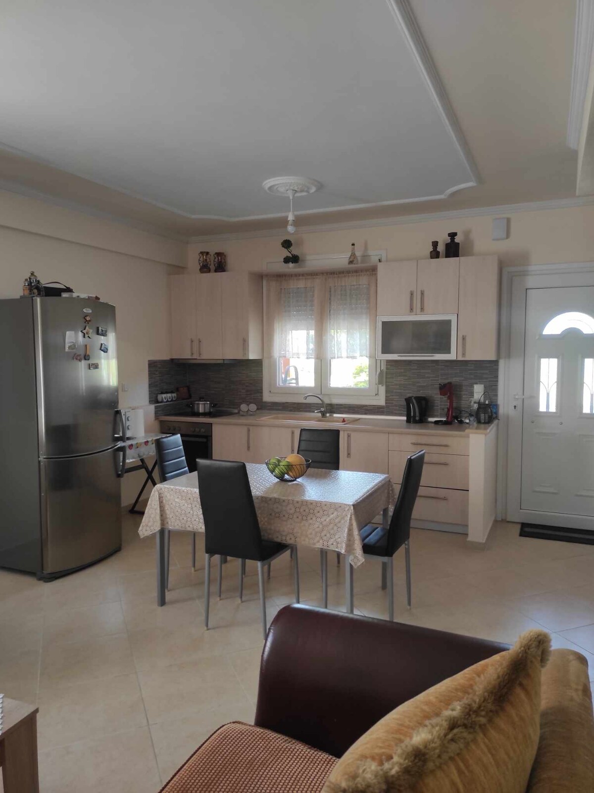 La maison de bord de mer de maman Mom's Seaside Home à côté de la plage de Kariani, accessible à pied (200 mètres), entièrement équipée, offre un séjour confortable. Maison spacieuse pour les amis, les couples et toute la famille. Offrant une grande cour avec salon de jardin et barbecue ! Eau chaude 24 heures sur 24 grâce à un chauffe-eau solaire ! À proximité, vous trouverez un supermarché (600 mètres) et une supérette (750 mètres), une taverne et un bar de plage (750 mètres).