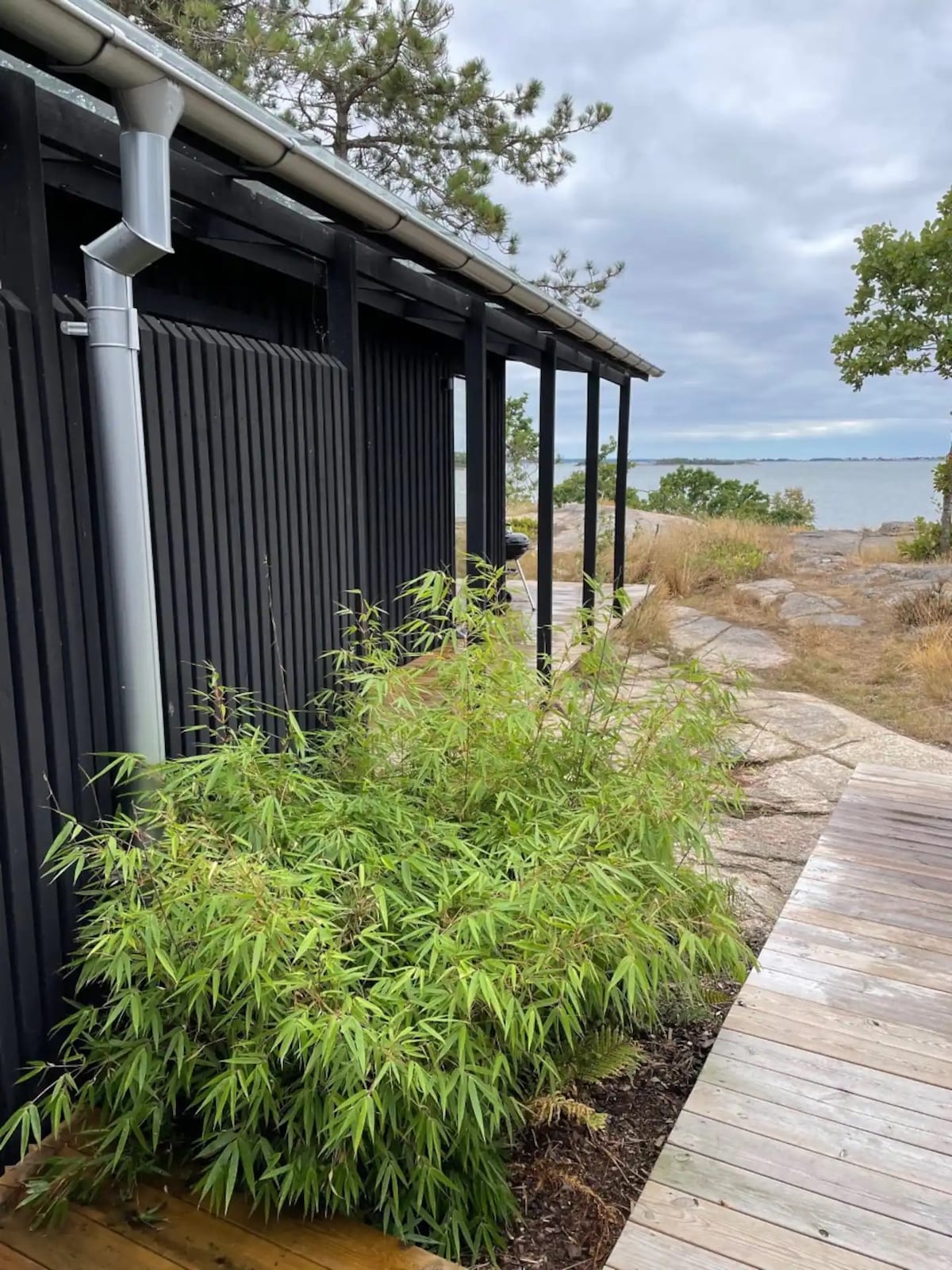 Maison moderne dans l'archipel suédois, vue sur la mer